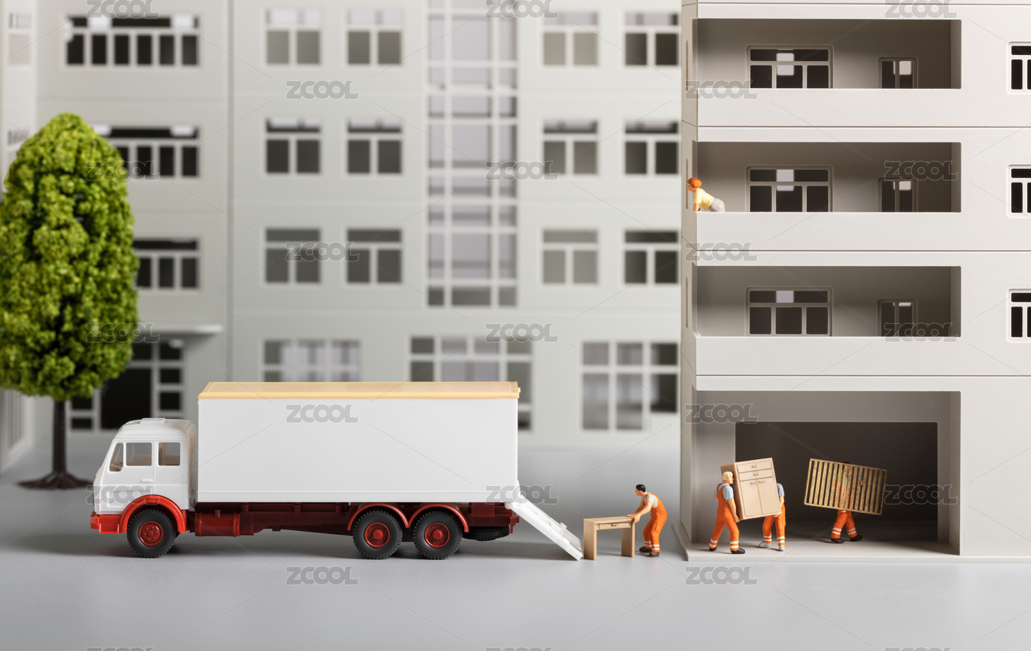 微縮創(chuàng)意新建大樓卡車貨運搬家公司專業(yè)團隊