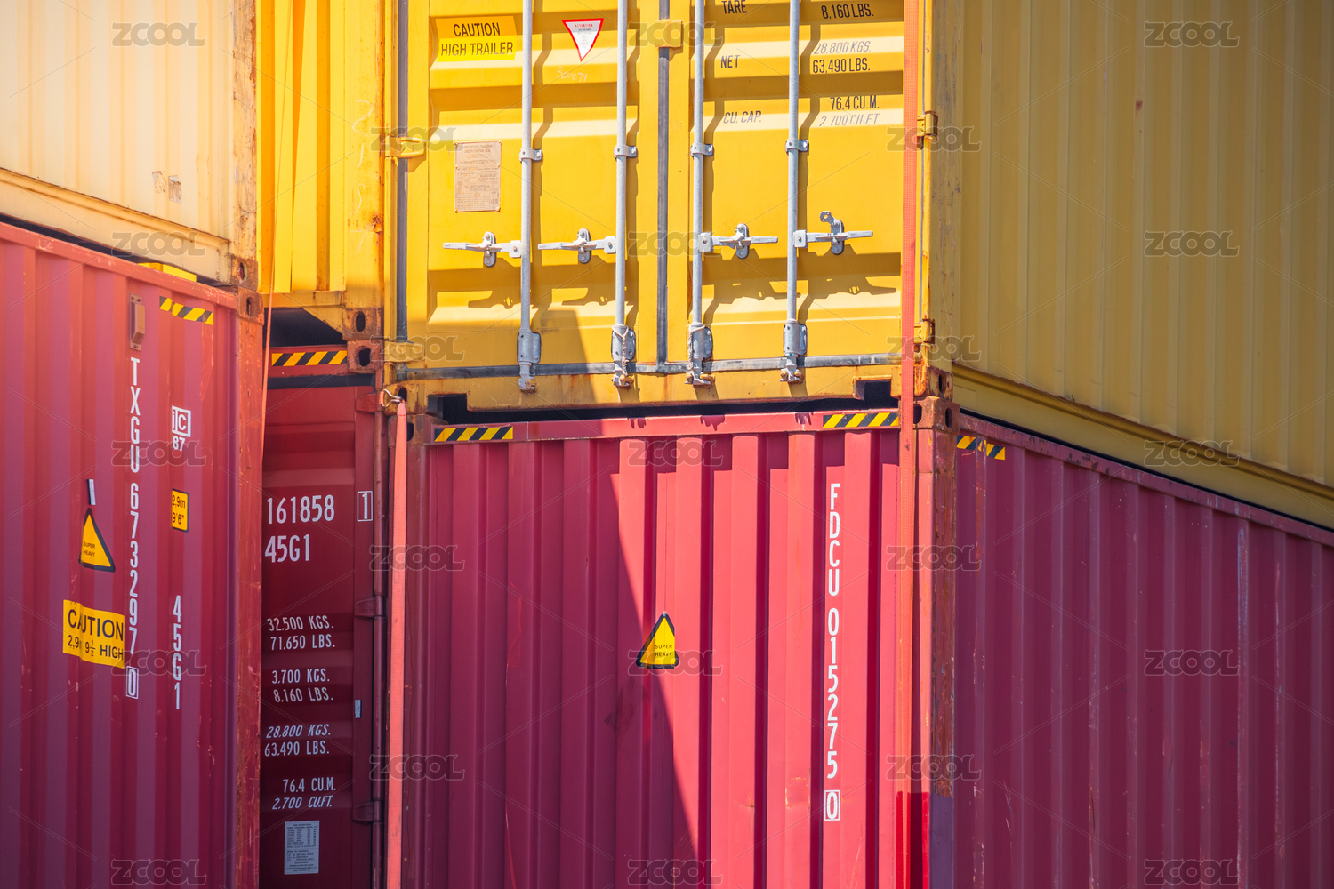 堆疊的集裝箱黃色和紅色的貨運(yùn)集裝箱