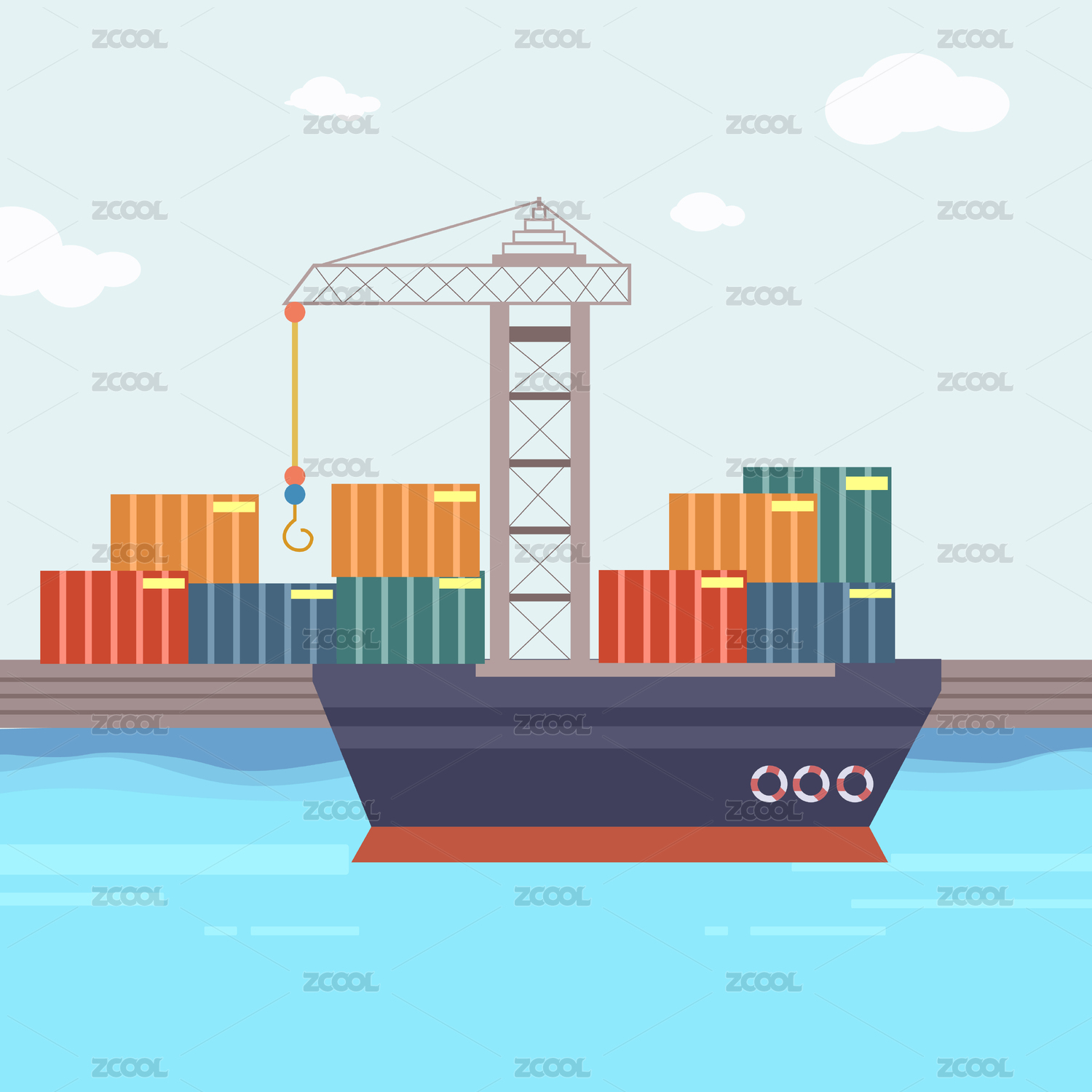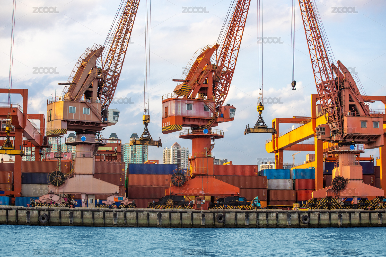 海邊繁忙的貨運(yùn)碼頭和集裝箱