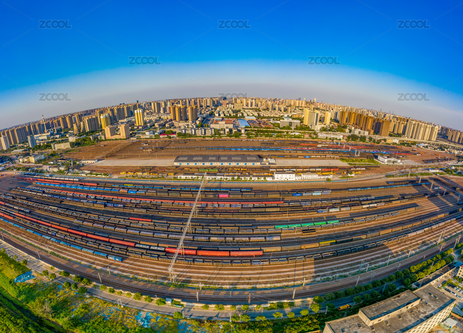 航拍鄭州北站鐵路編組站鐵路貨運(yùn)重載列車