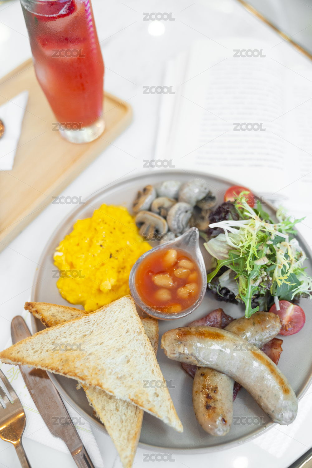 西式全日餐薯?xiàng)l煎蛋擺盤展示