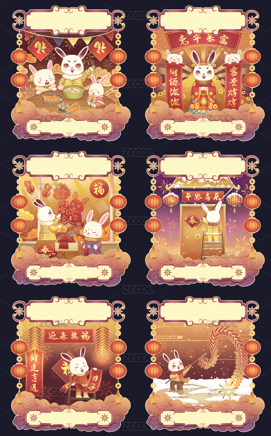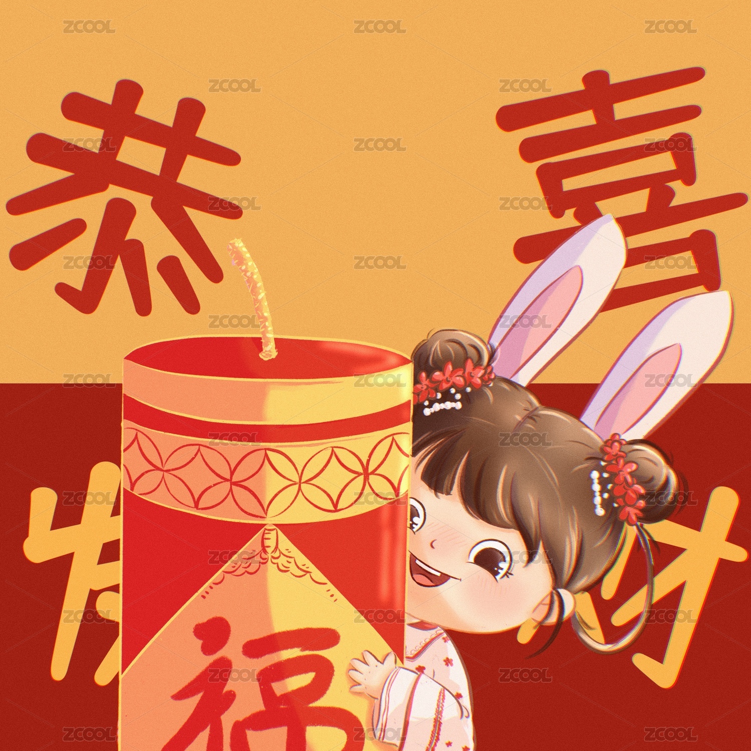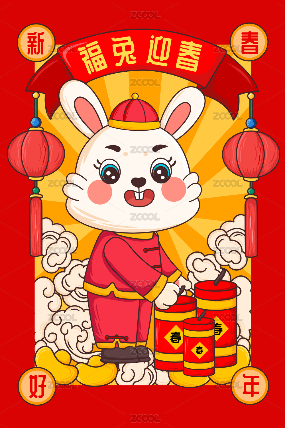 除夕小男孩放爆竹年獸兔子過春節(jié)