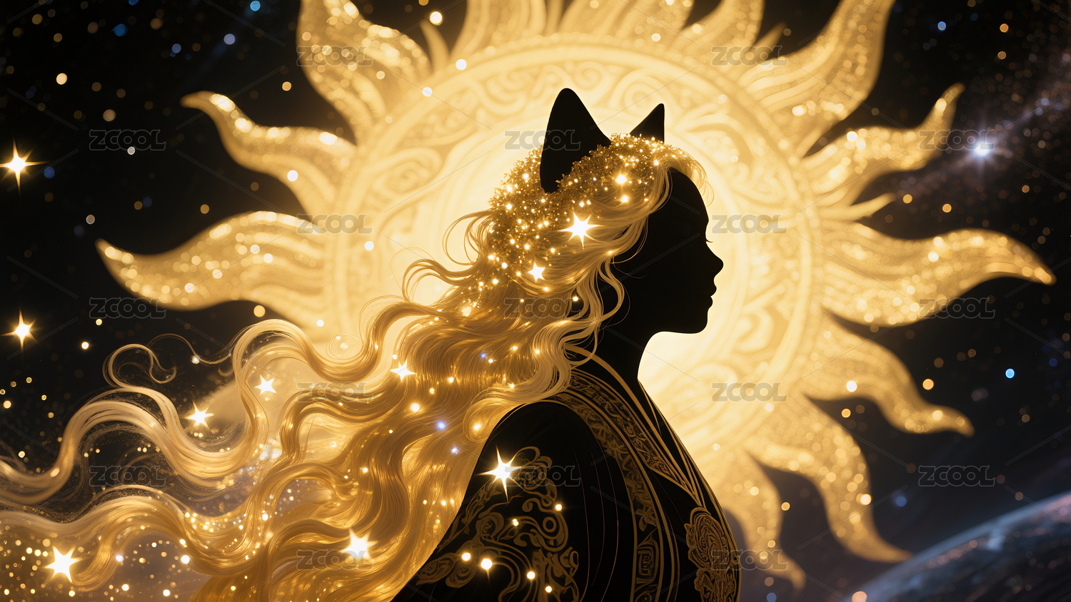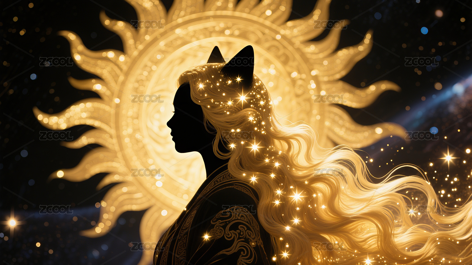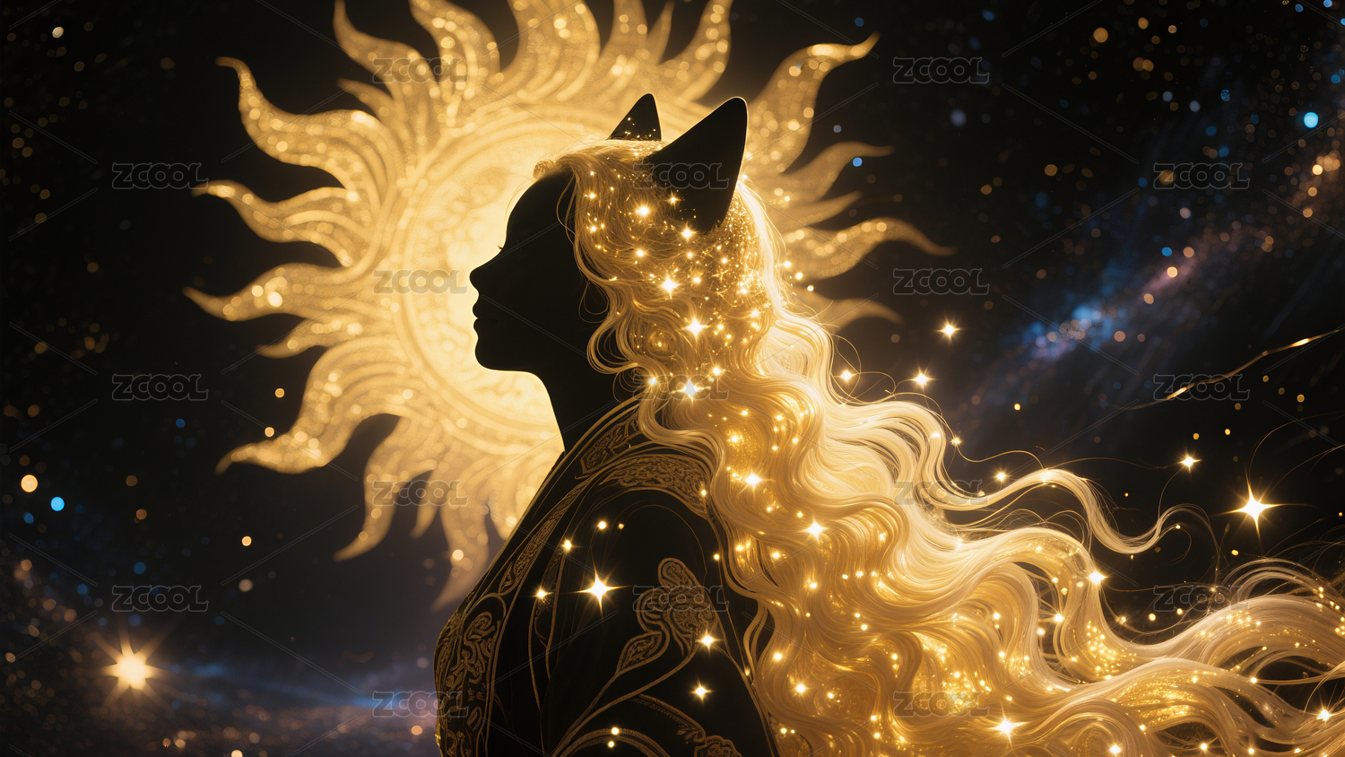 古風(fēng)貓女祭司側(cè)臉剪影夢幻插畫