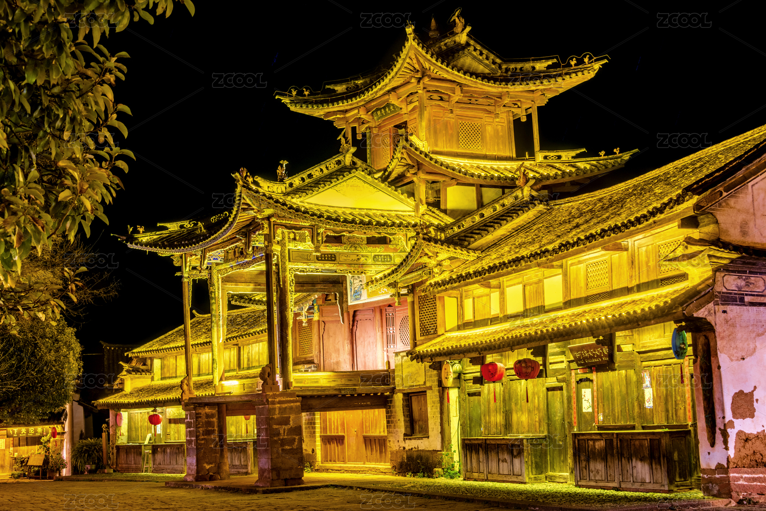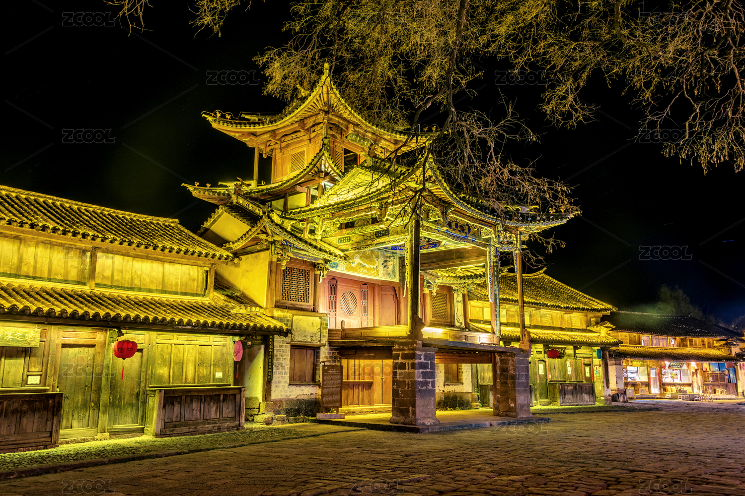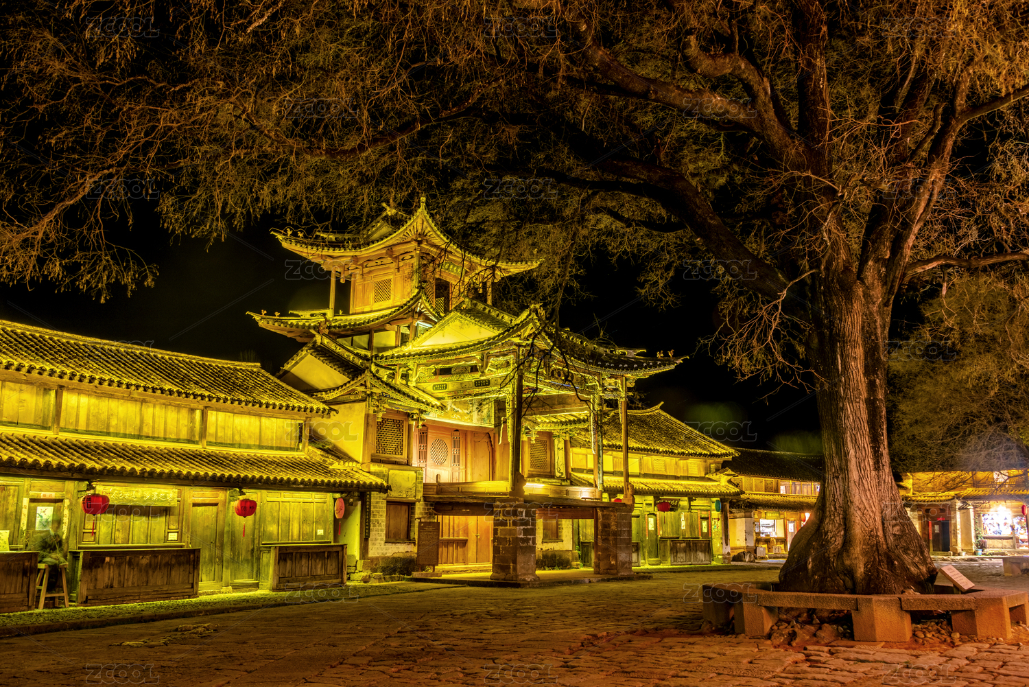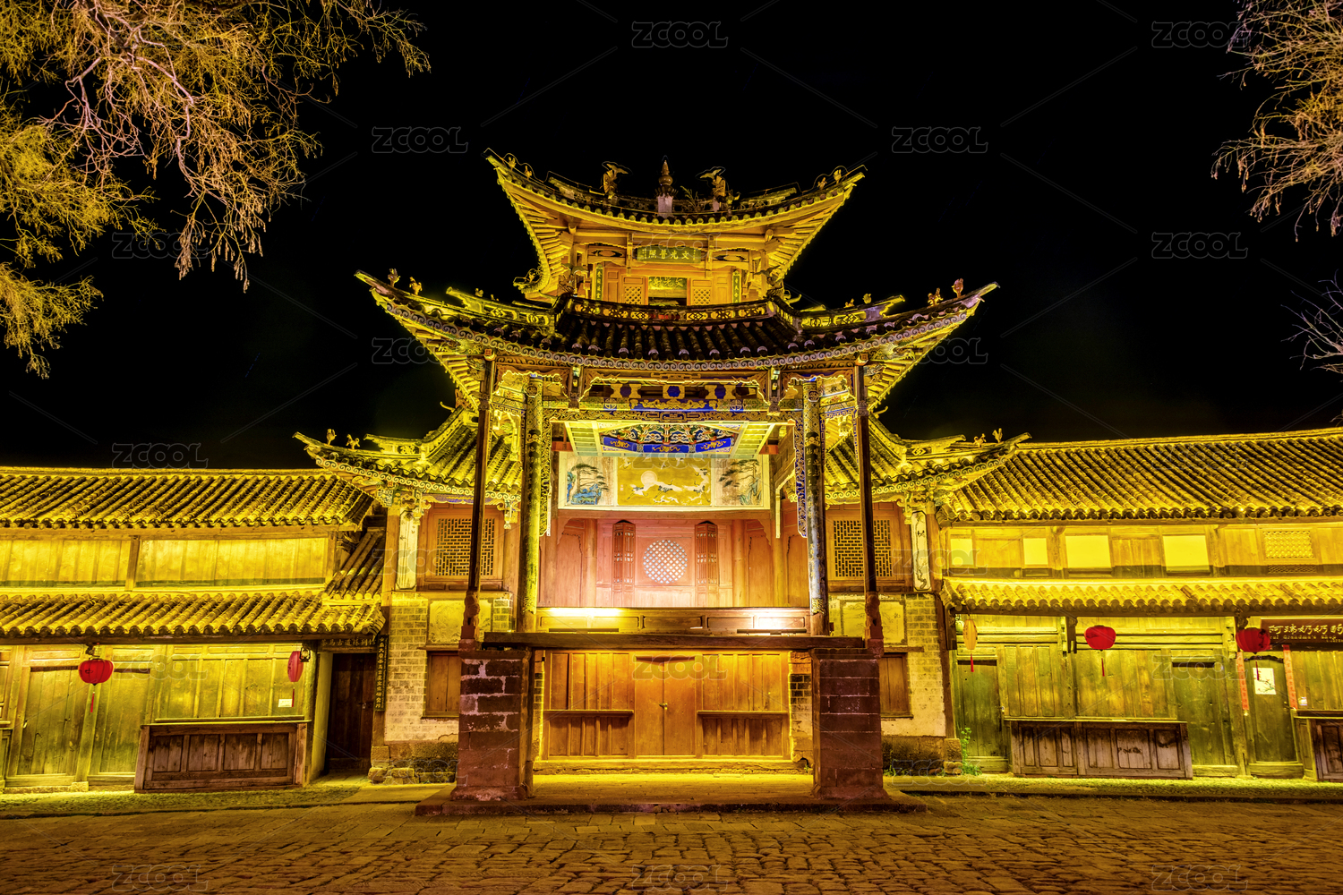 中國云南大理沙溪古鎮(zhèn)四方街古戲臺夜景