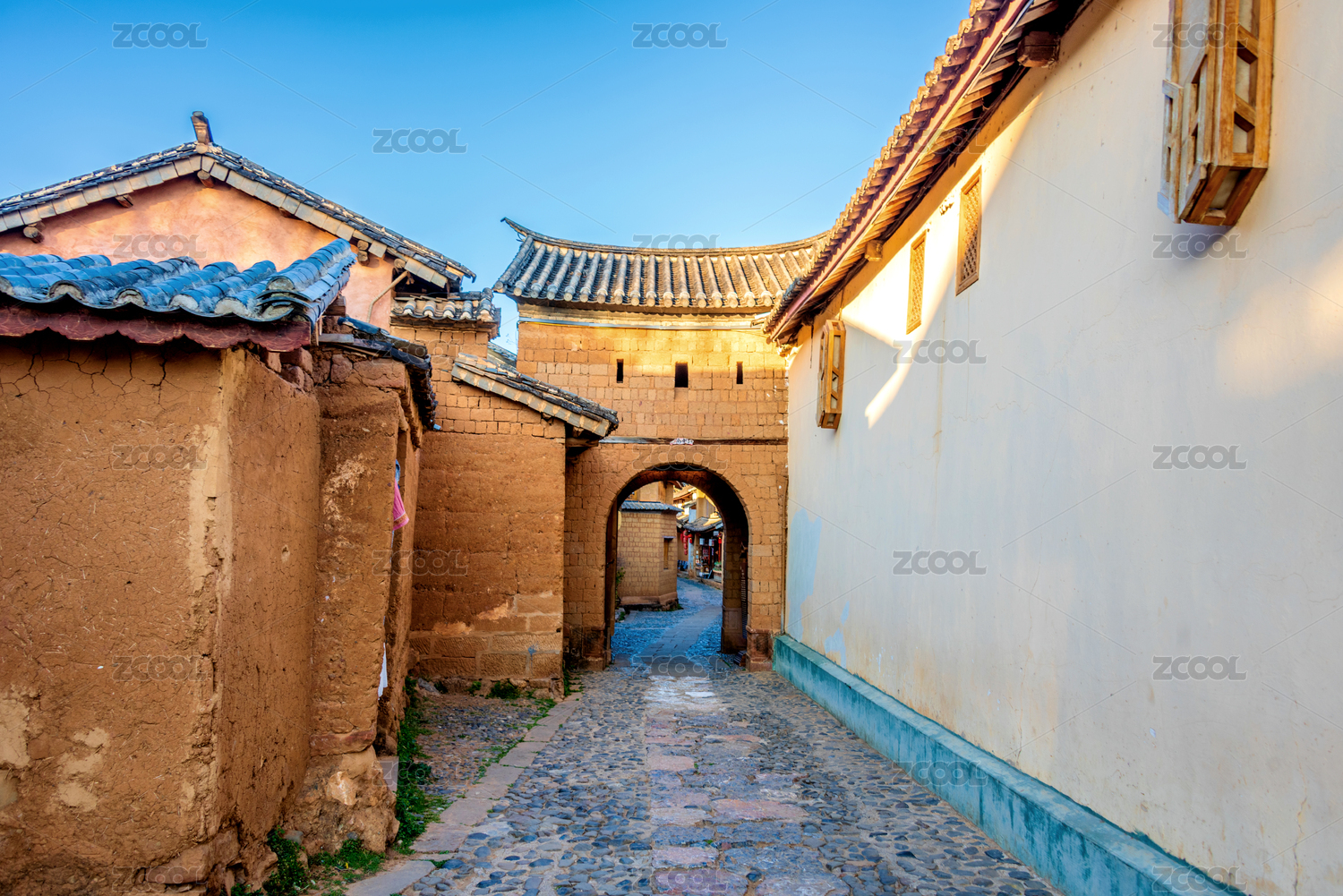 早晨云南省大理州劍川縣沙溪古鎮(zhèn)建筑景觀