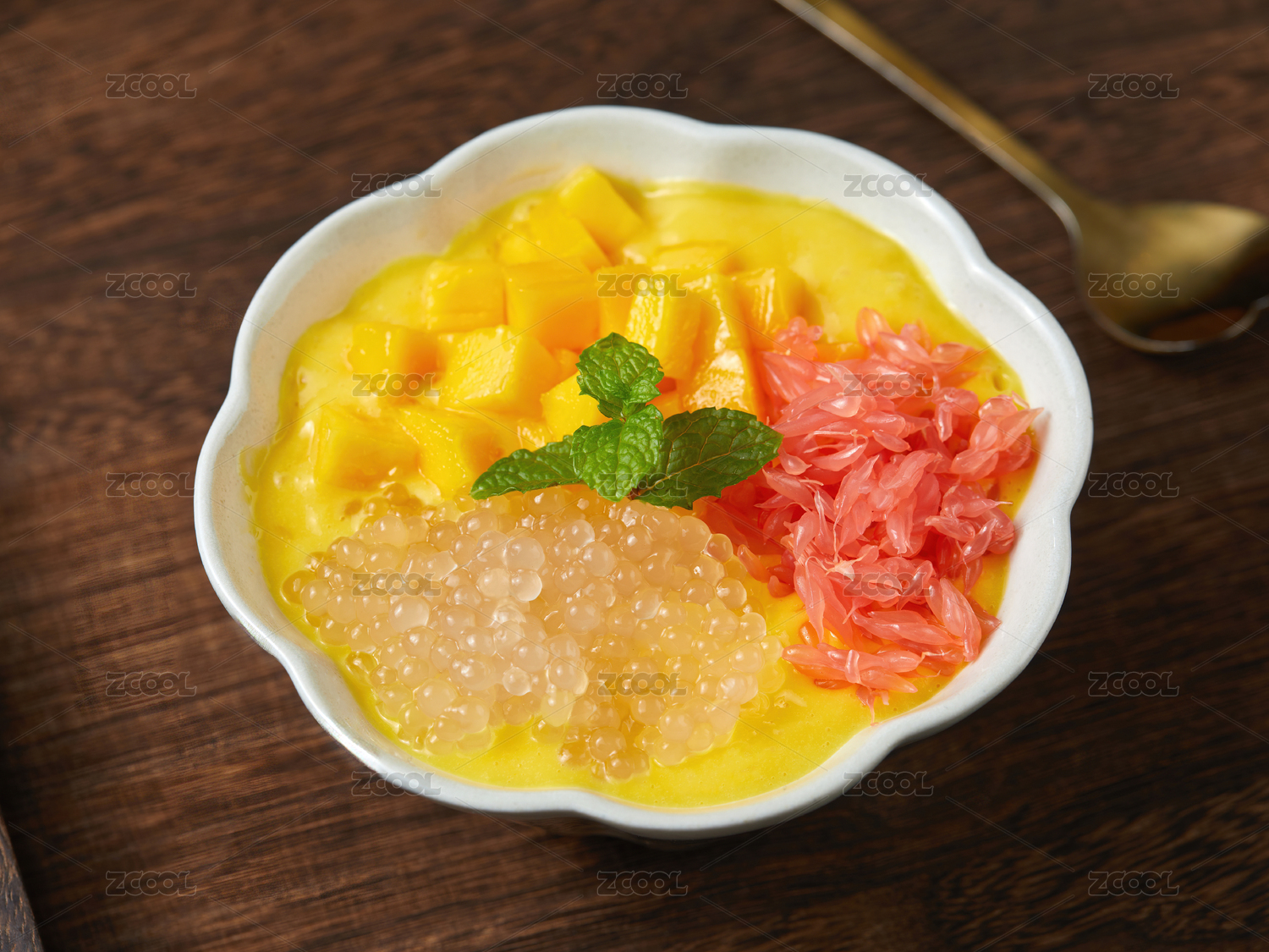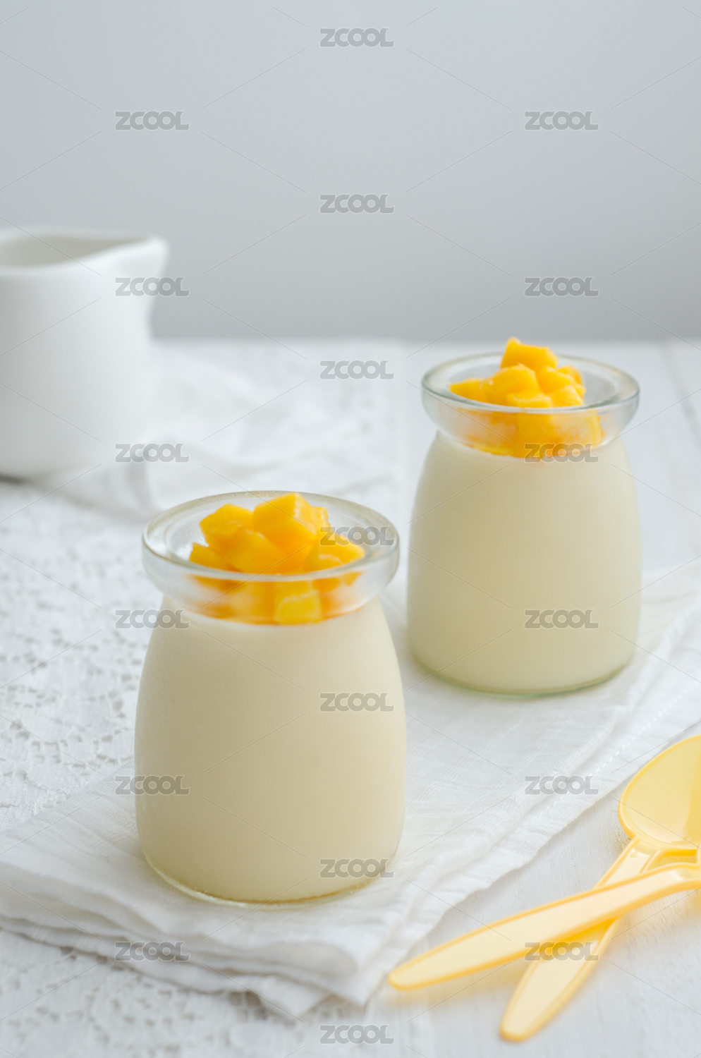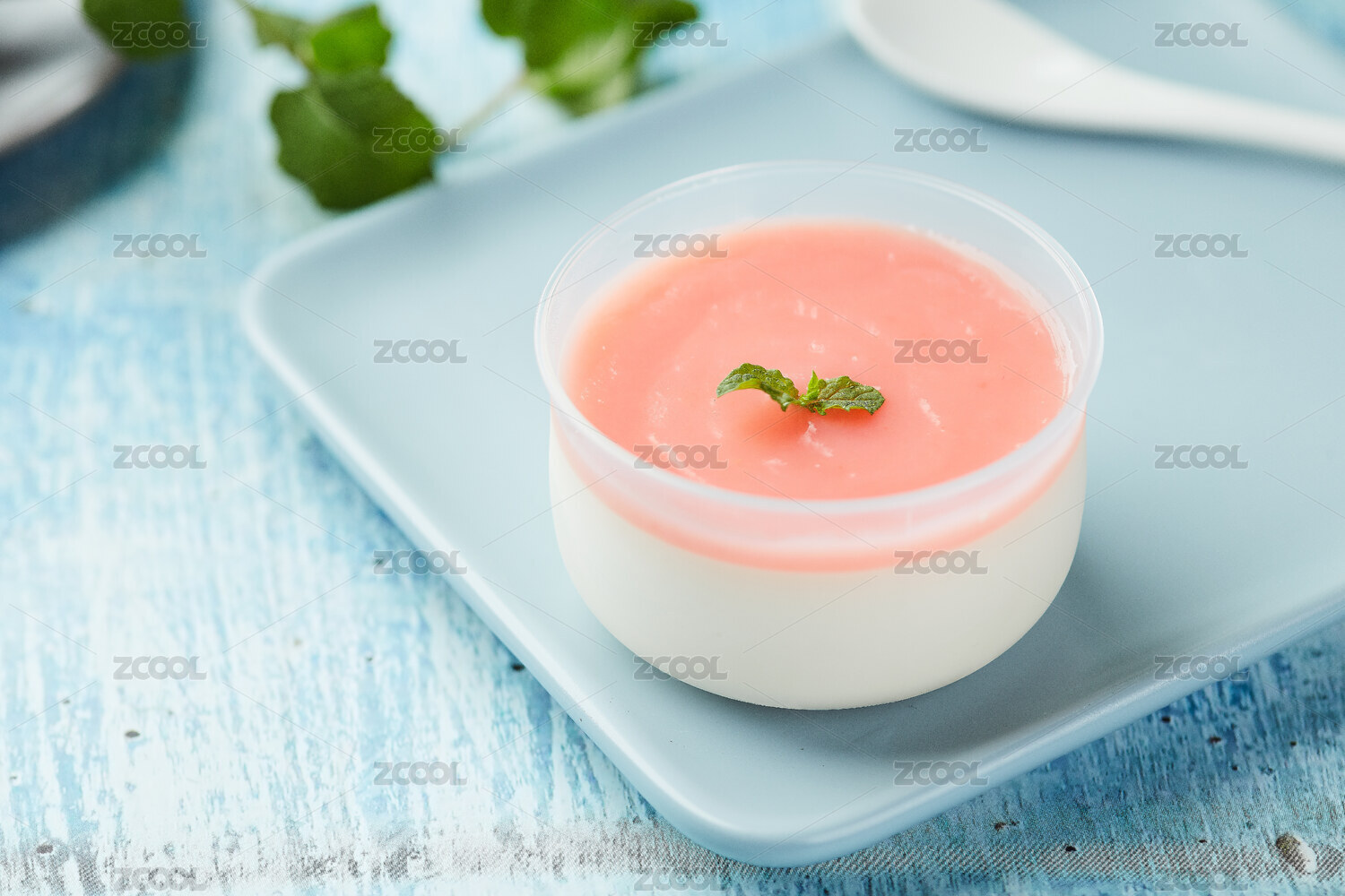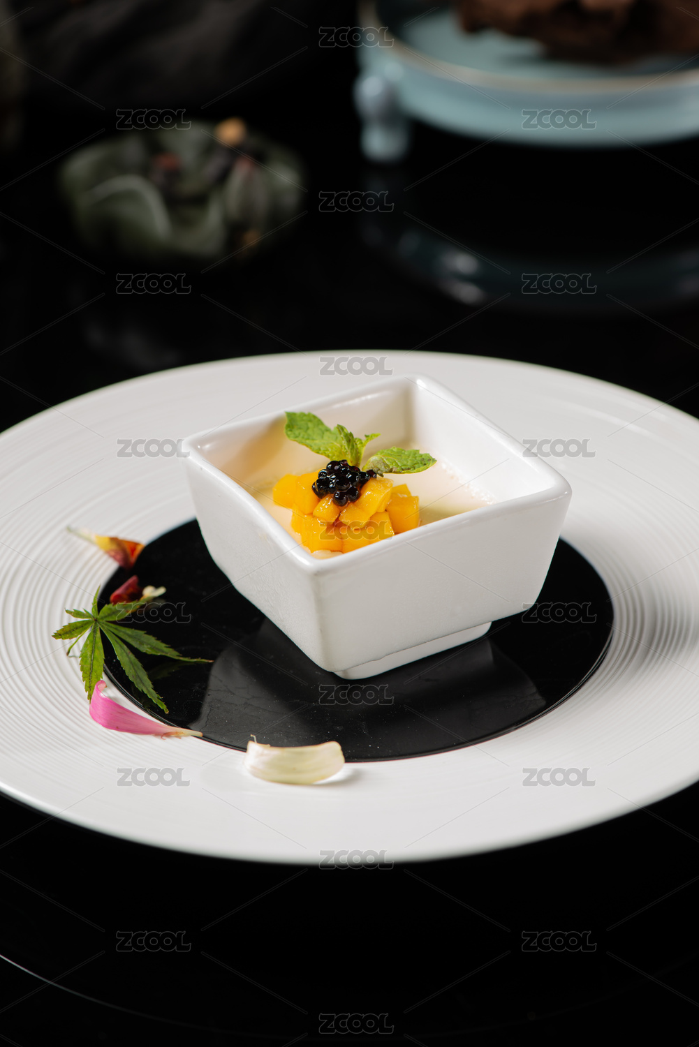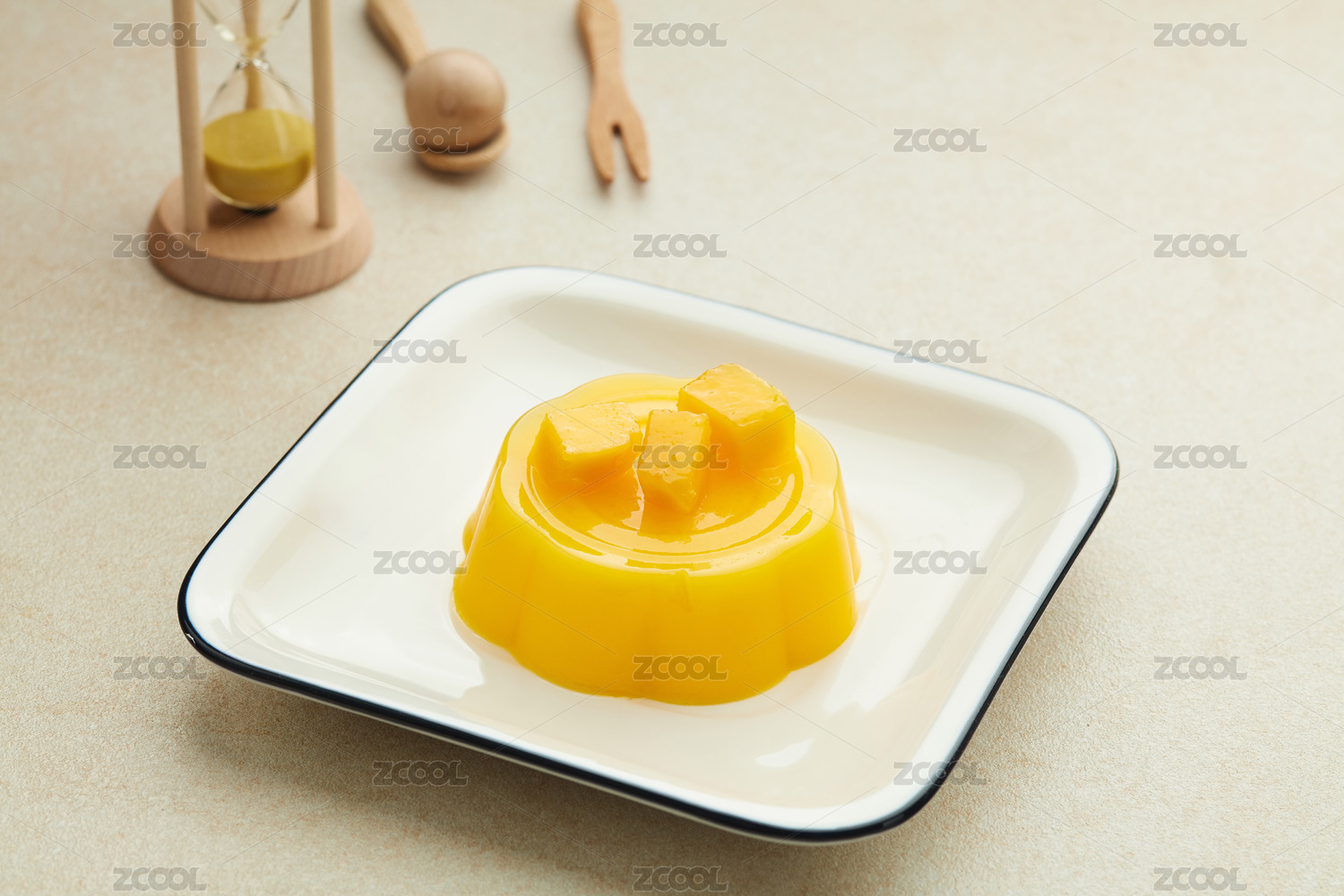 藍(lán)色瓷碗盛放的奧利奧芒果布丁