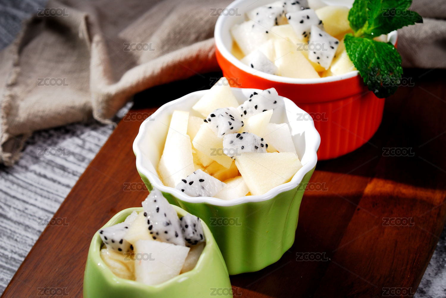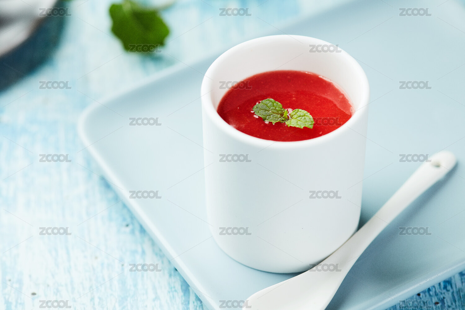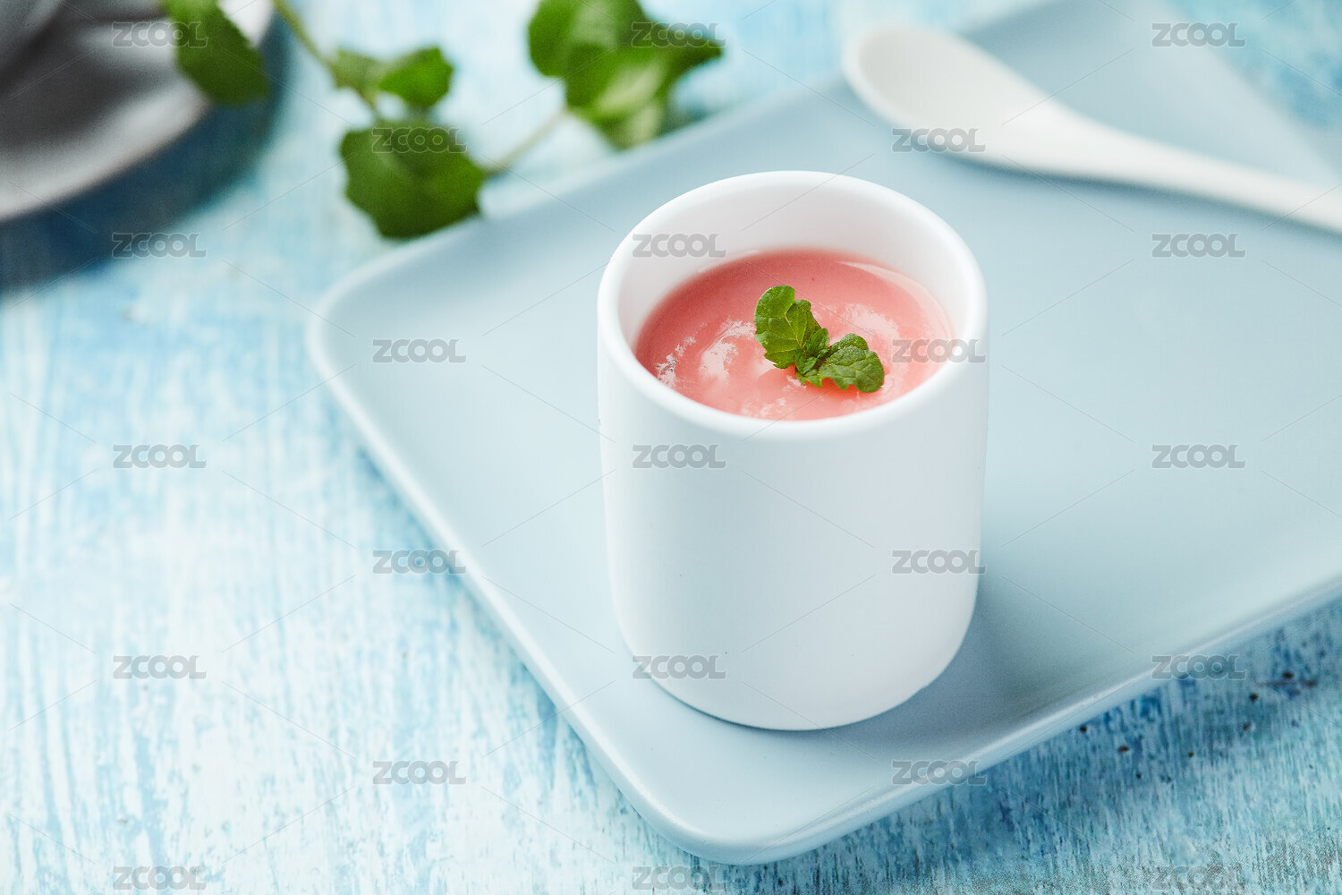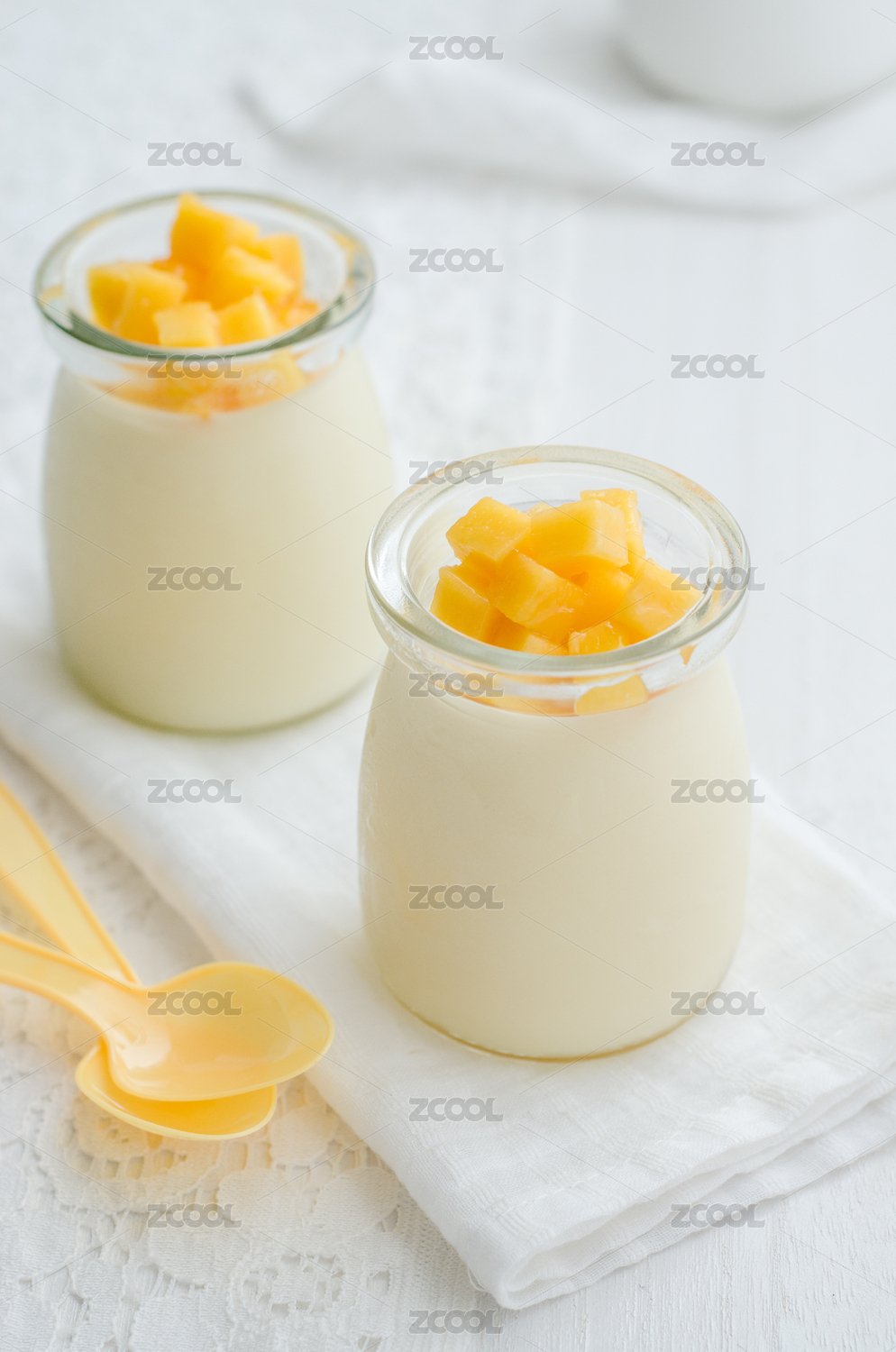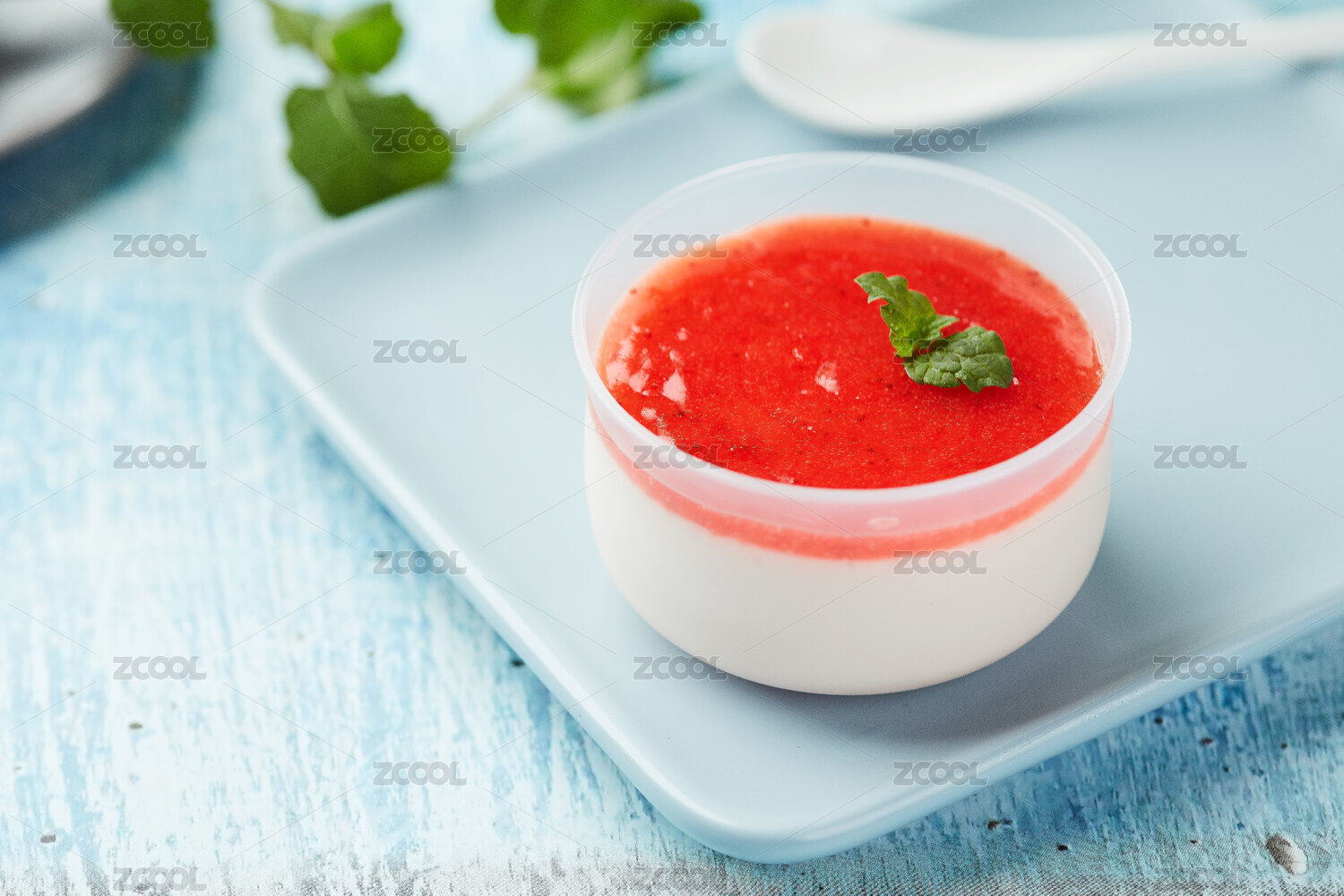 藍(lán)色瓷碗盛放的奧利奧芒果布丁