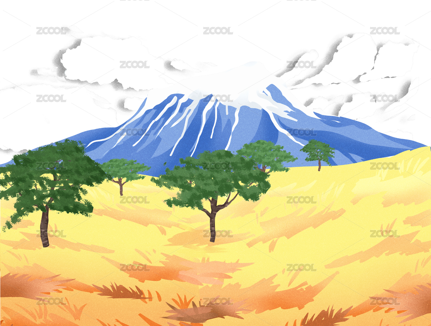 扁平風格坦桑尼亞國家地標乞力馬扎羅山插畫背景