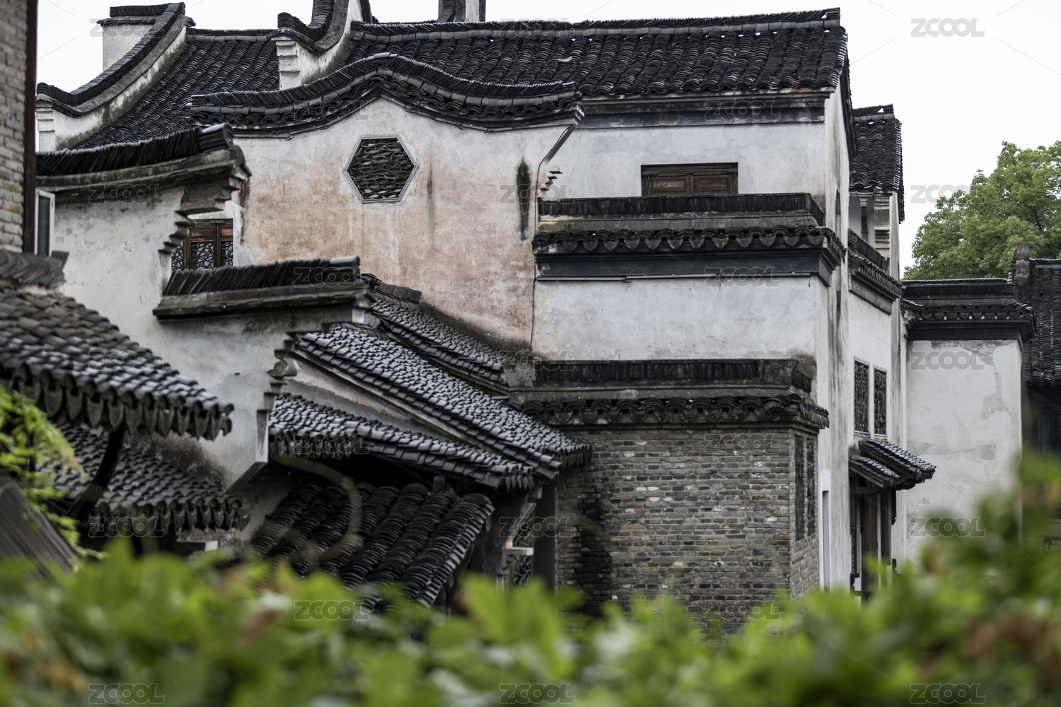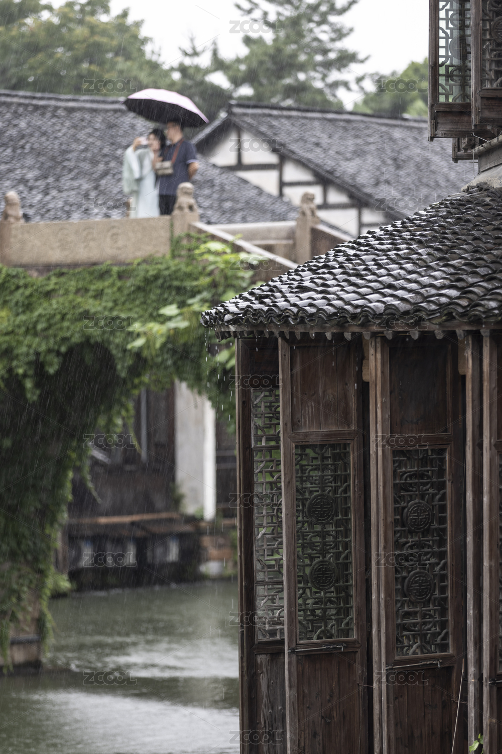中國千年古鎮(zhèn)烏鎮(zhèn)古建筑下雨天