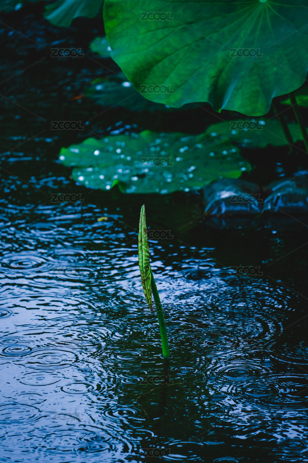 公園清晨下雨天荷葉