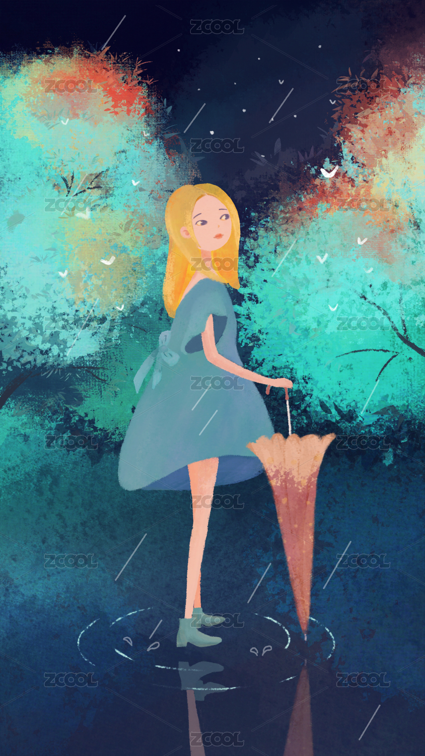下雨天打傘的女孩