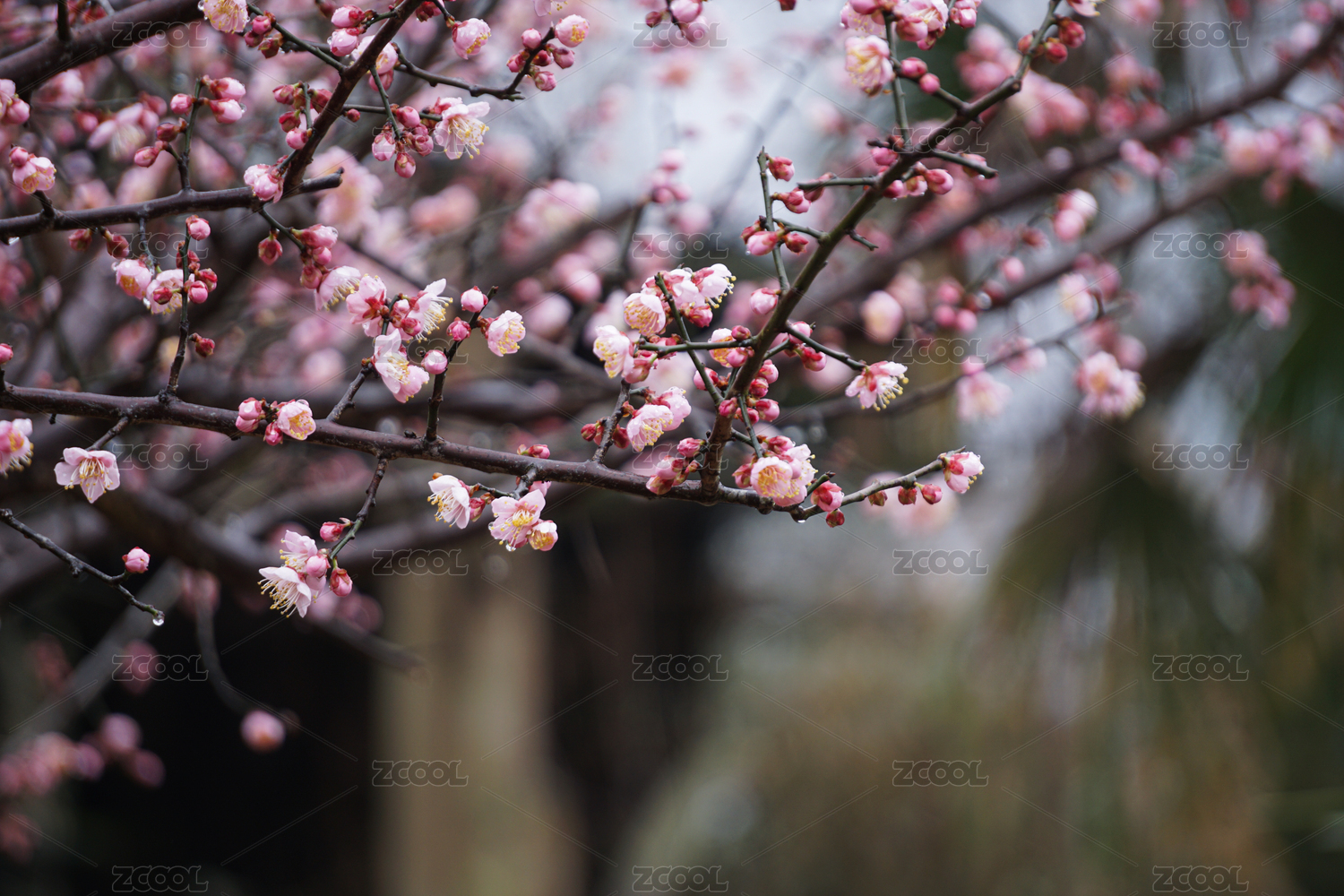 下雨天掛著水珠的植物和花特寫