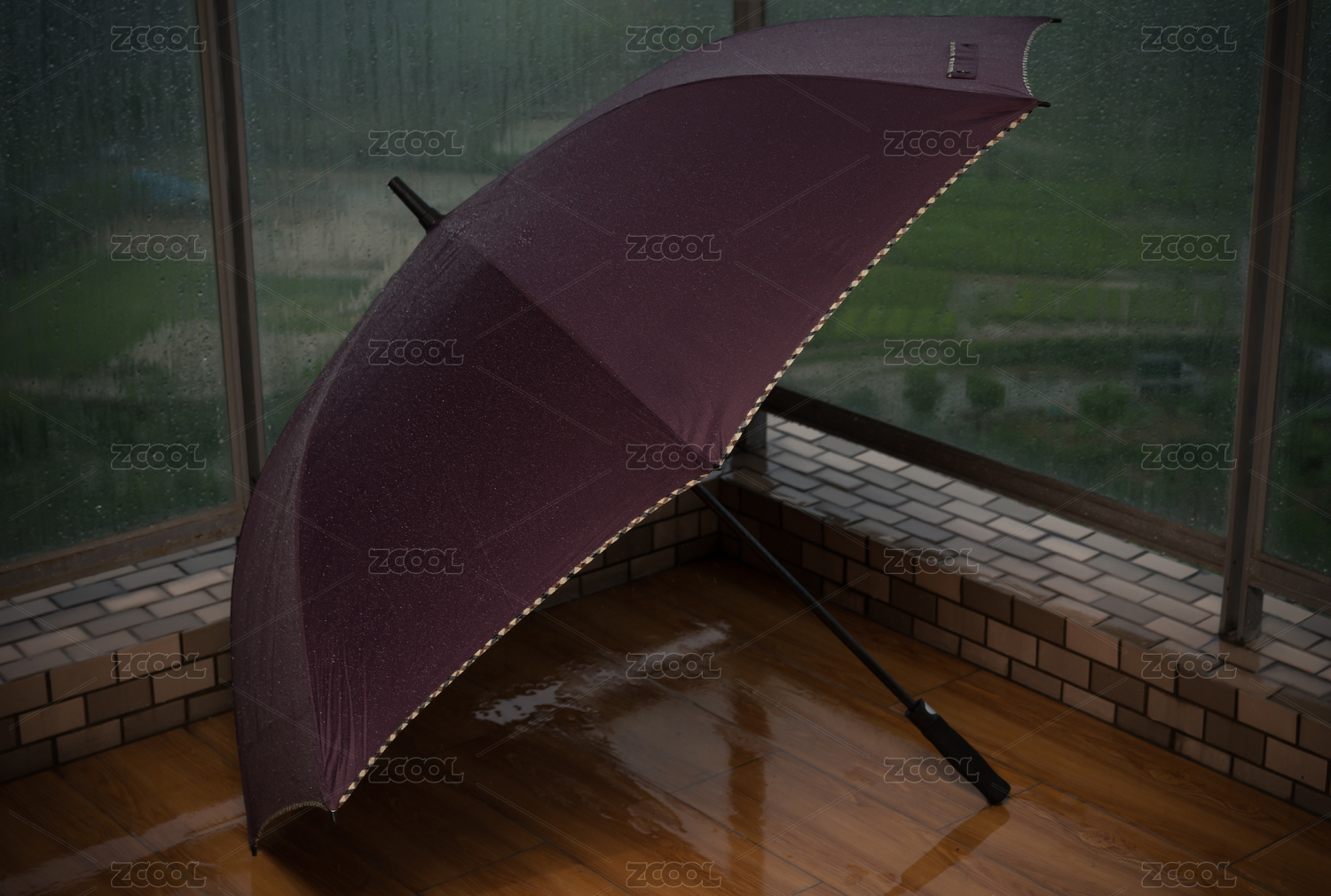下雨天陽臺及雨傘