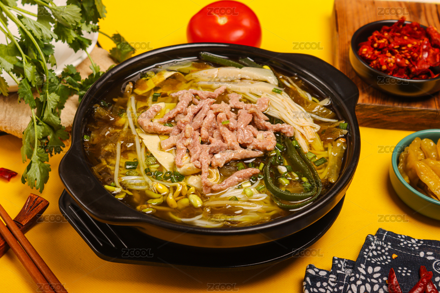 中餐美食-家常菜-酸菜肉絲粉