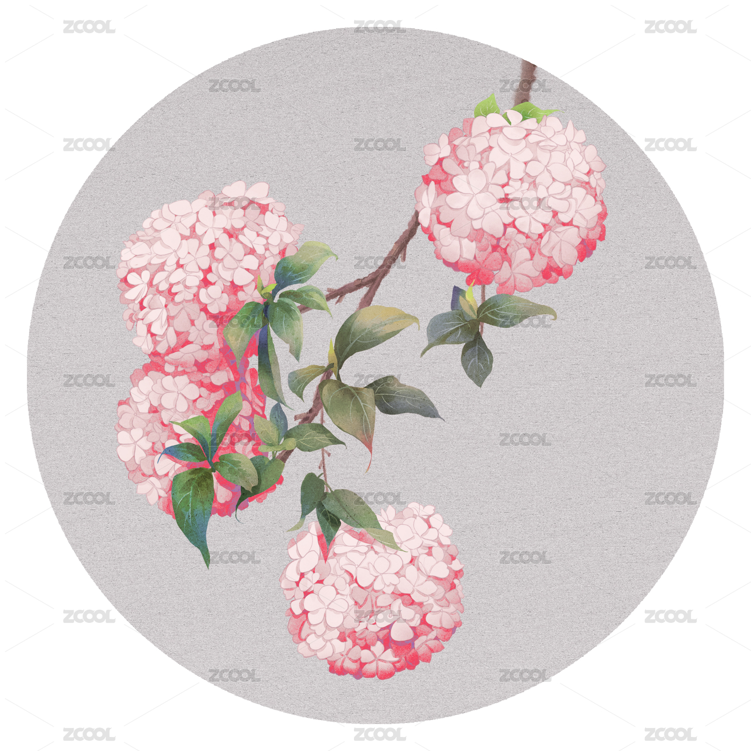 粉色木繡球手繪水彩花卉裝飾畫印花