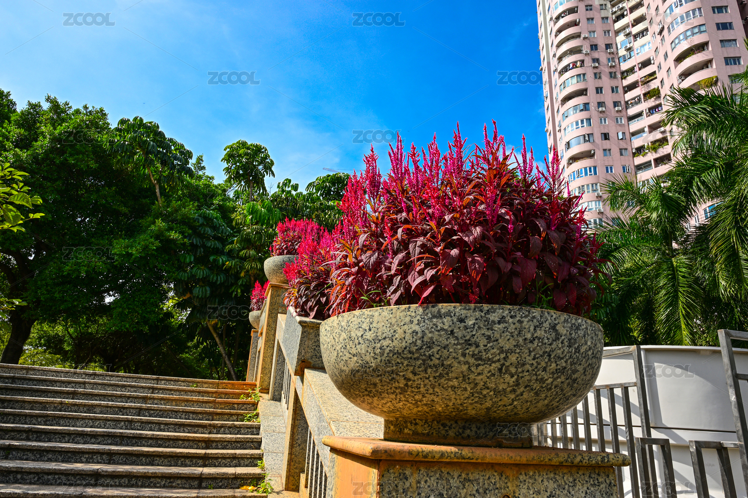 深圳太子灣藍天下的城市建筑外墻花卉裝飾