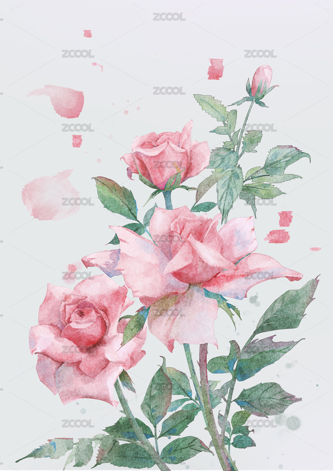 粉色月季玫瑰花卉裝飾畫印花手繪水彩畫