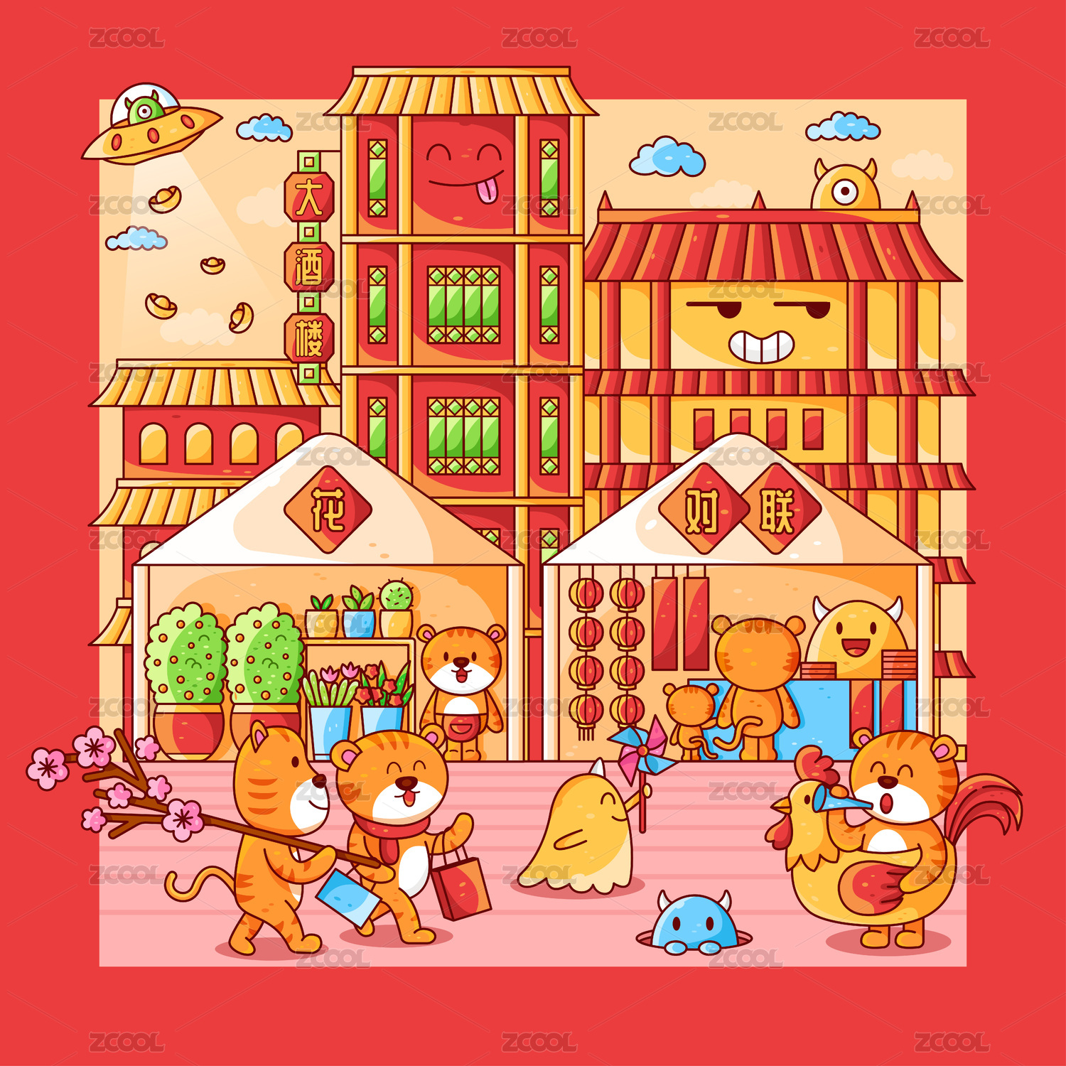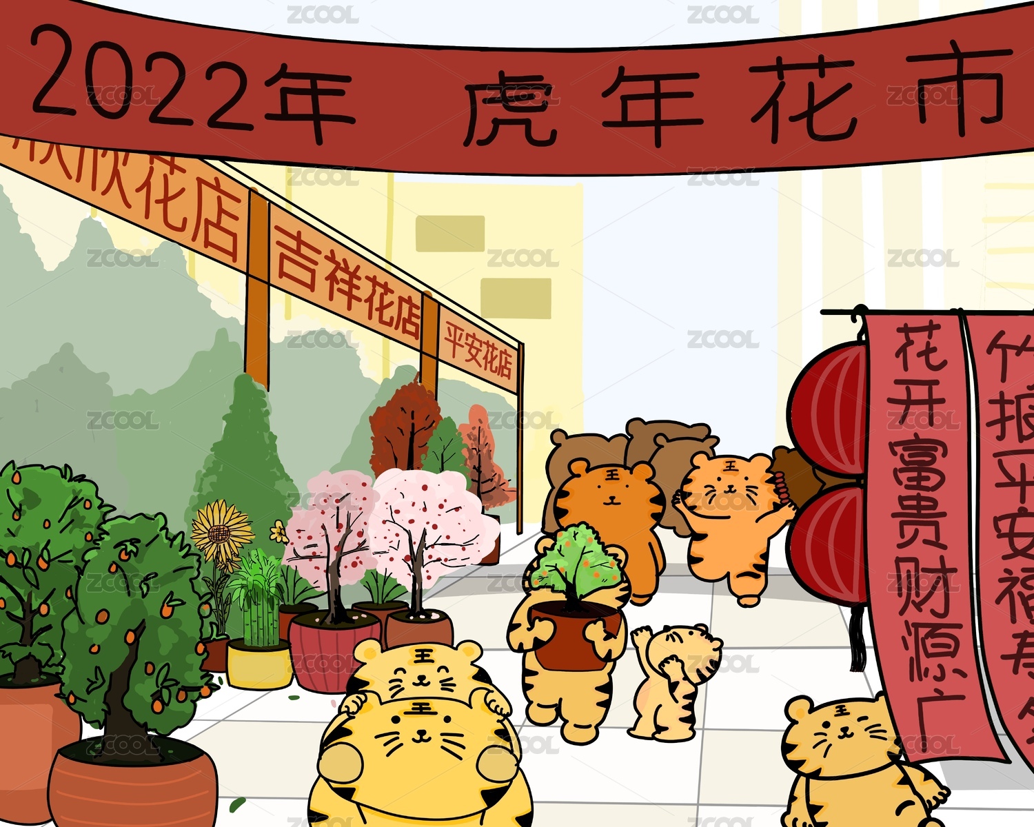 虎年新春插畫(huà)之逛花市