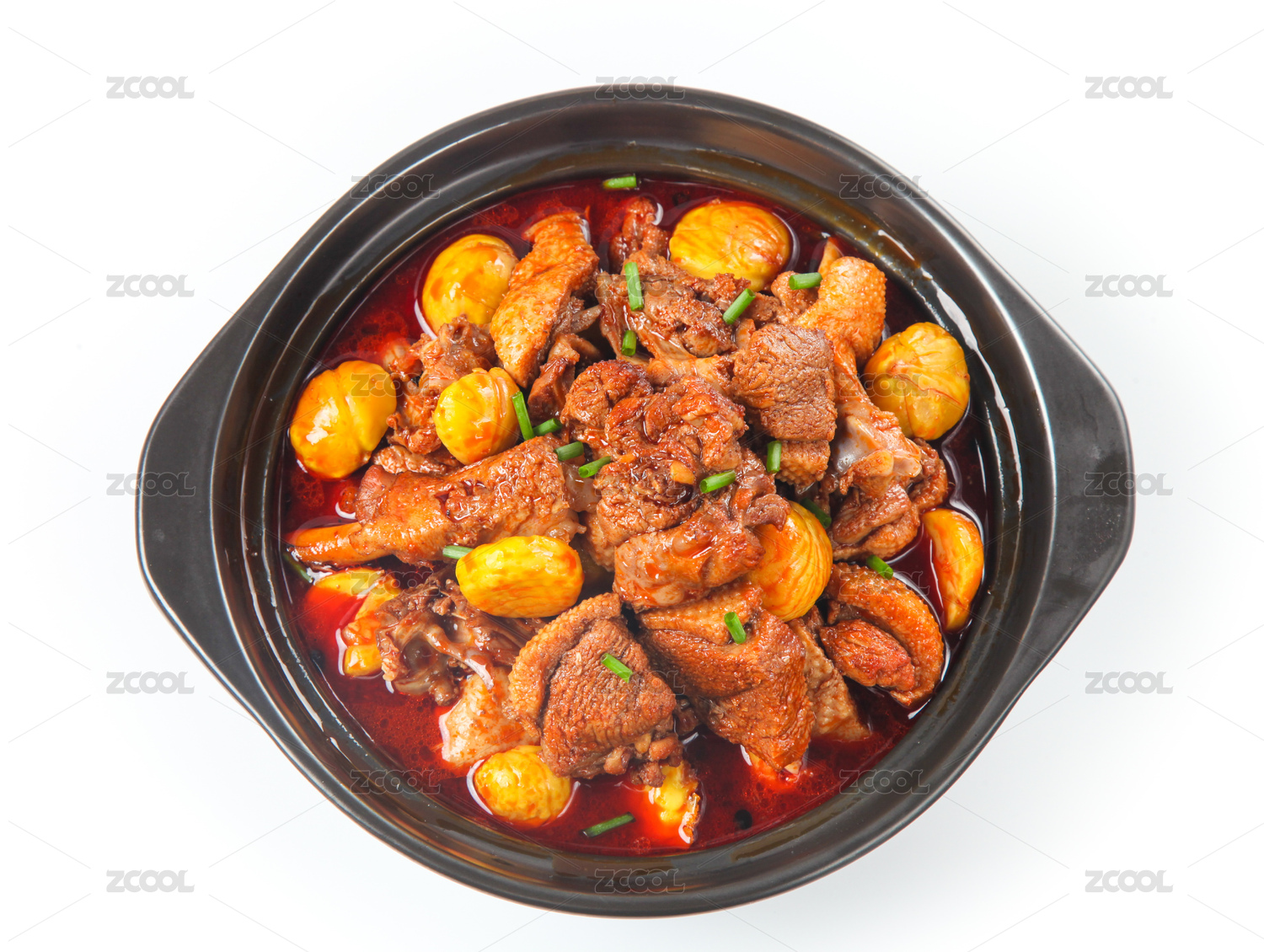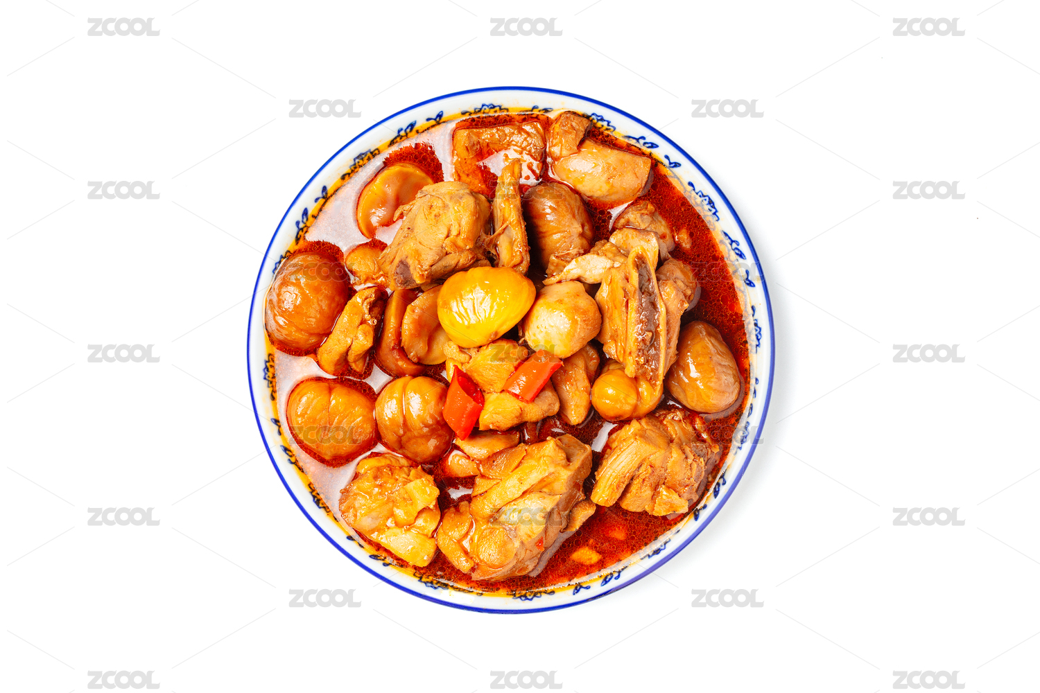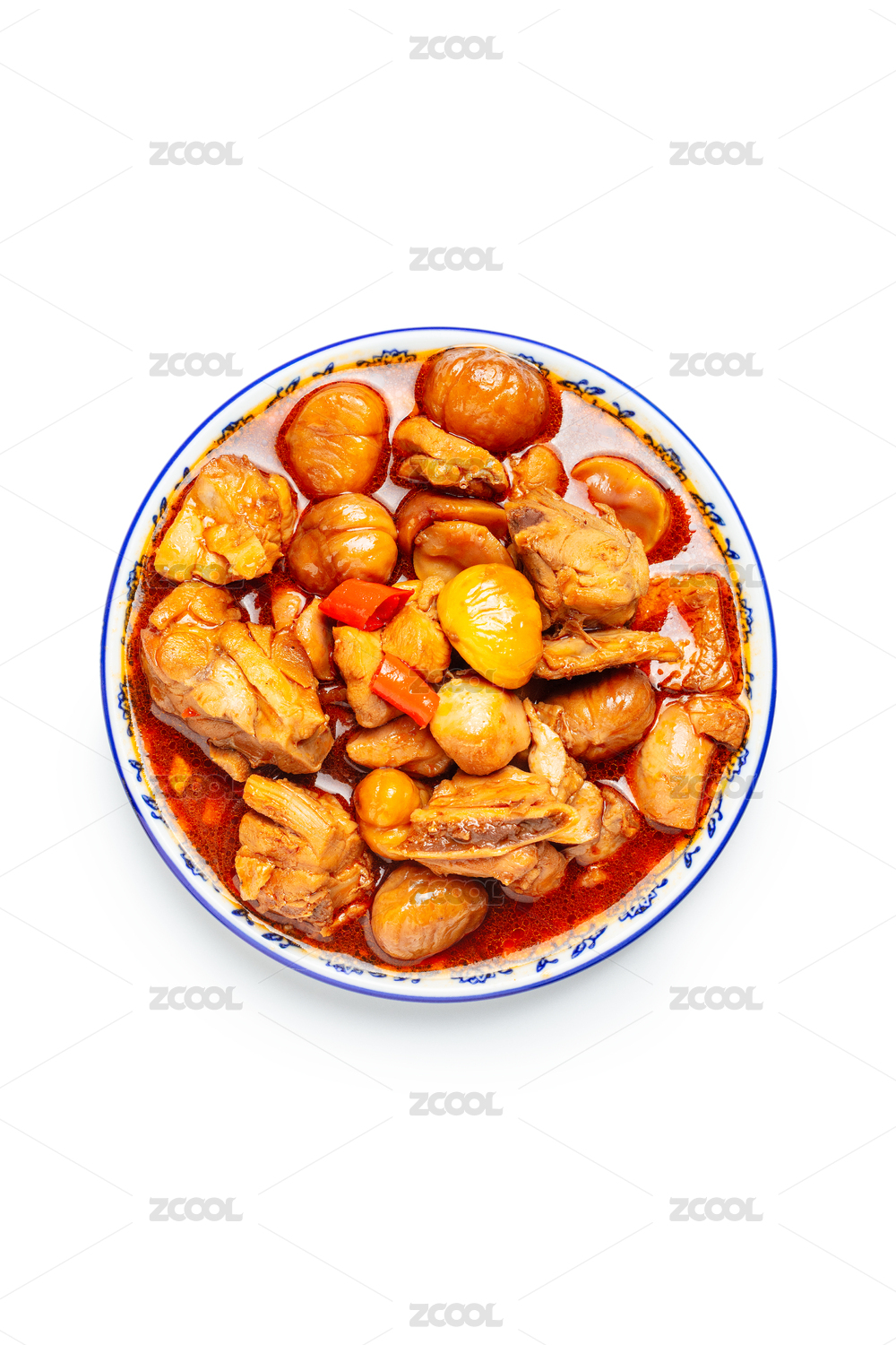 白色背景板栗燒雞