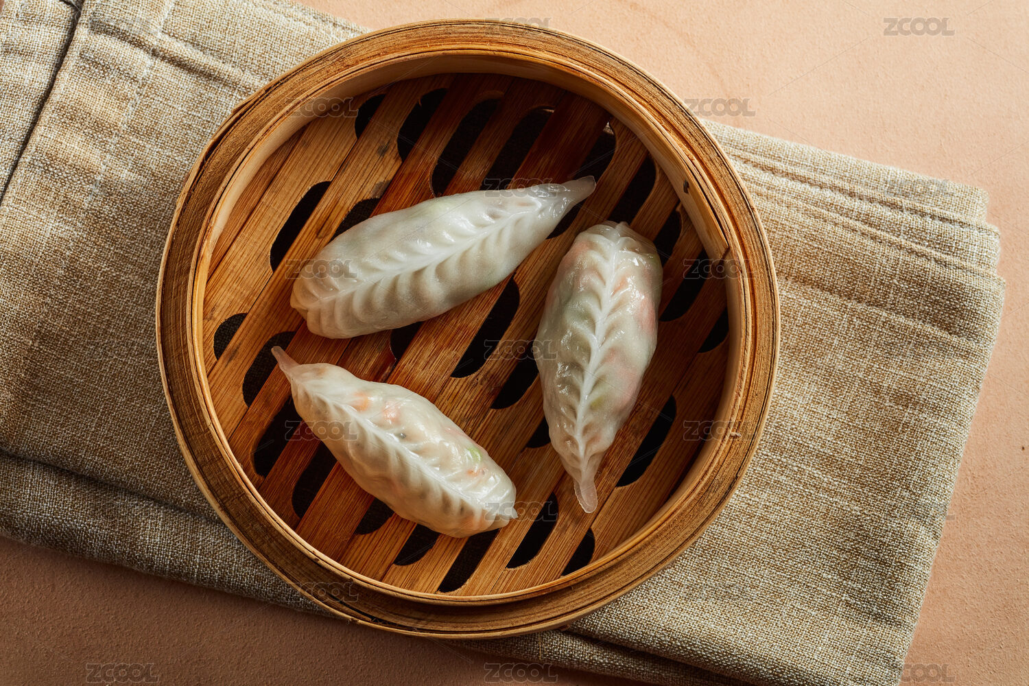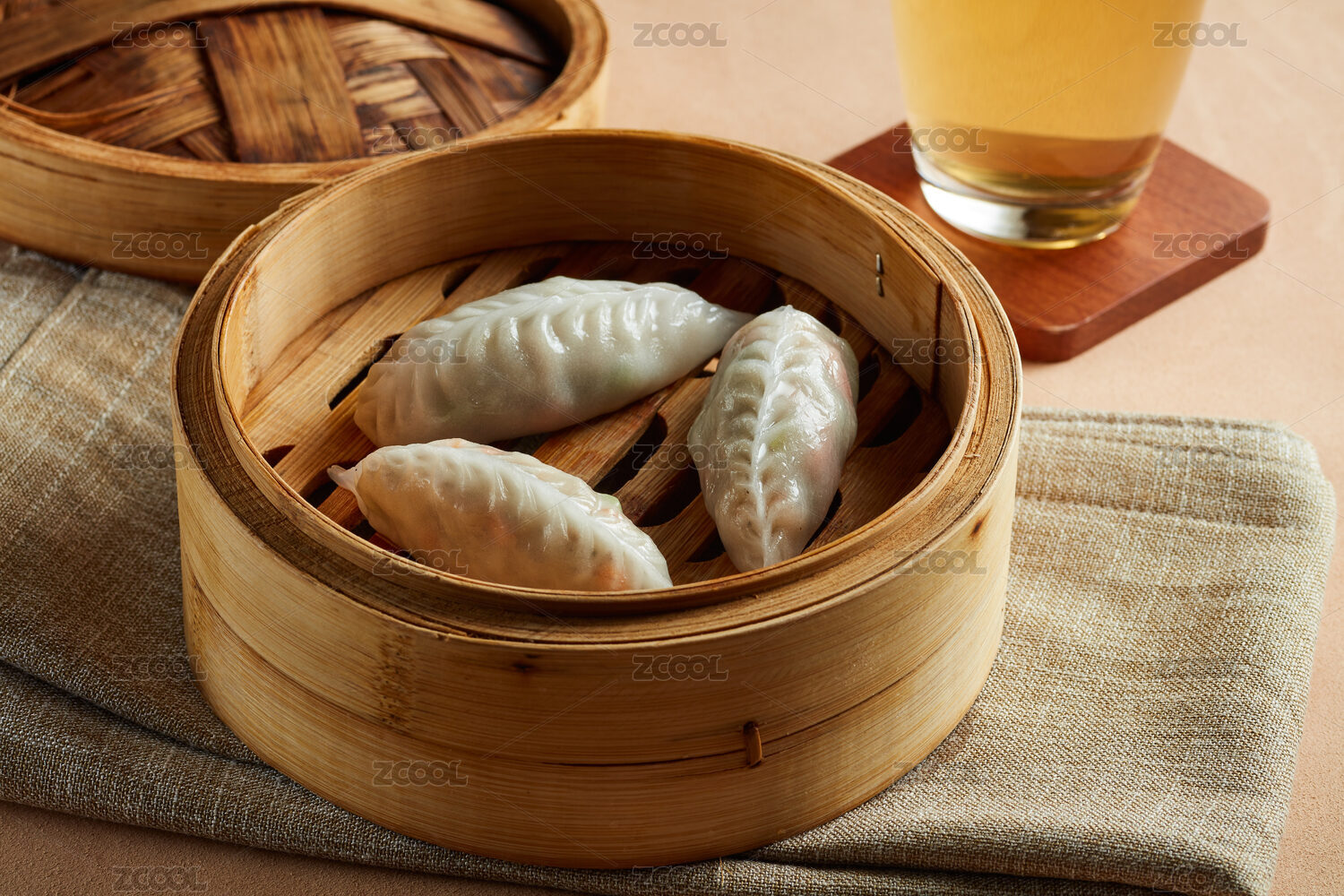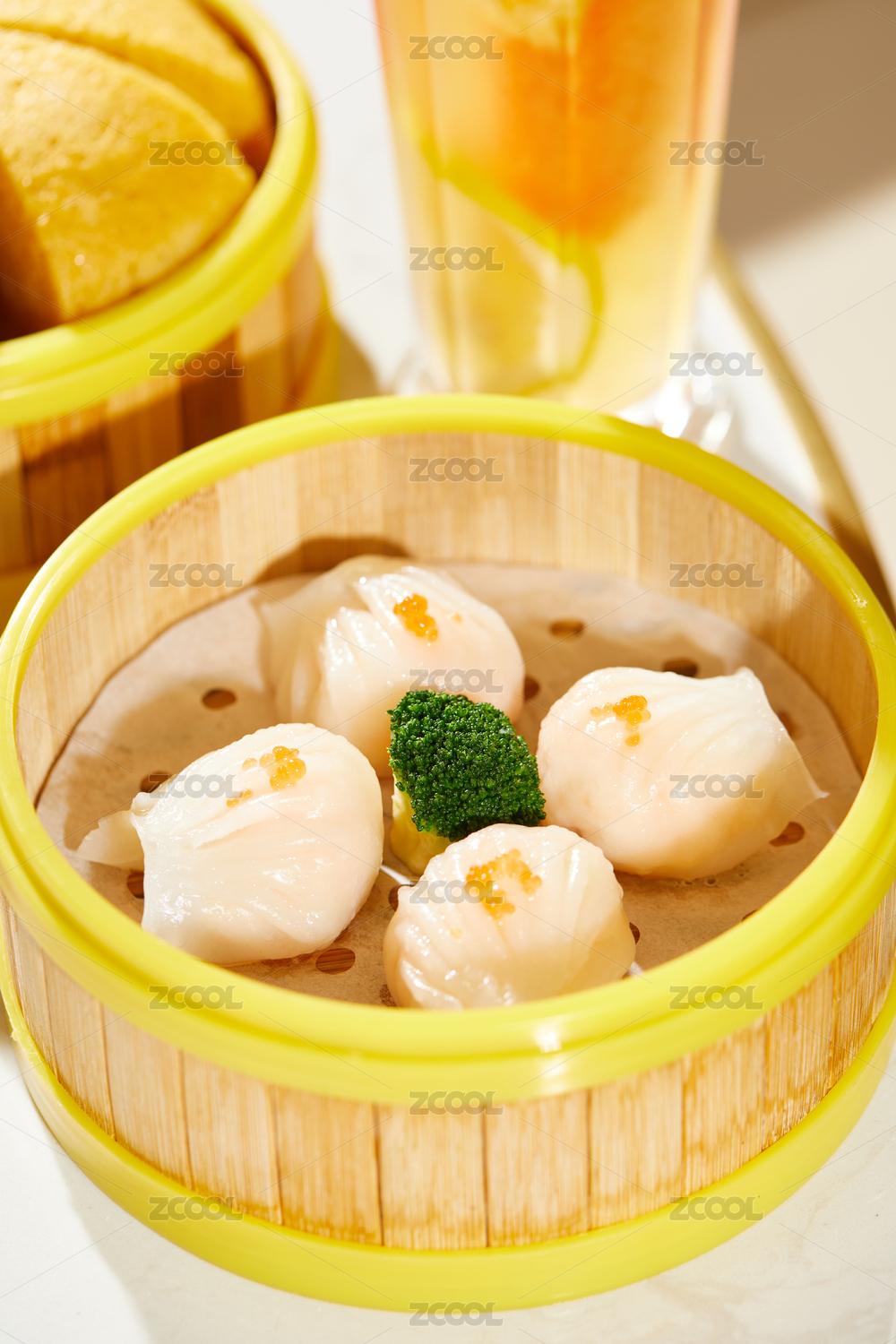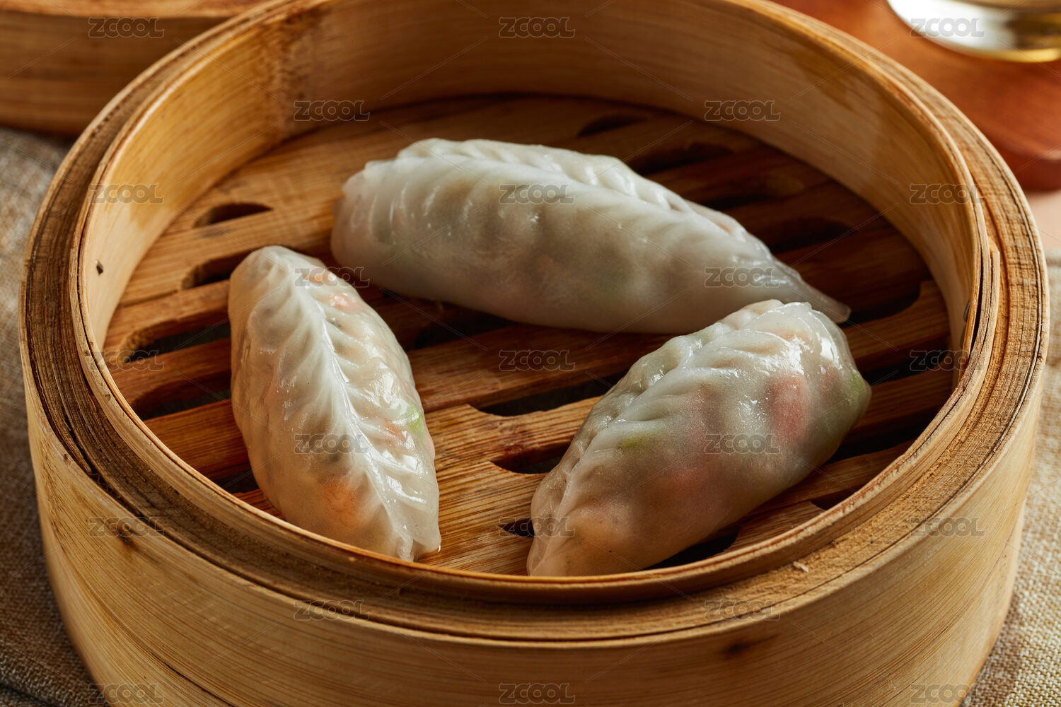 傳統(tǒng)糕點水晶玉米餃子放在蒸籠里