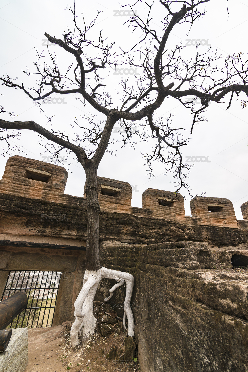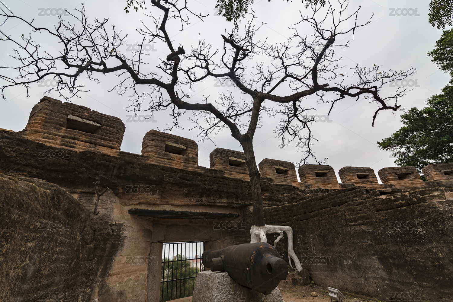 漳州南炮臺(tái)內(nèi)部的鐵炮和枯樹,中國福建