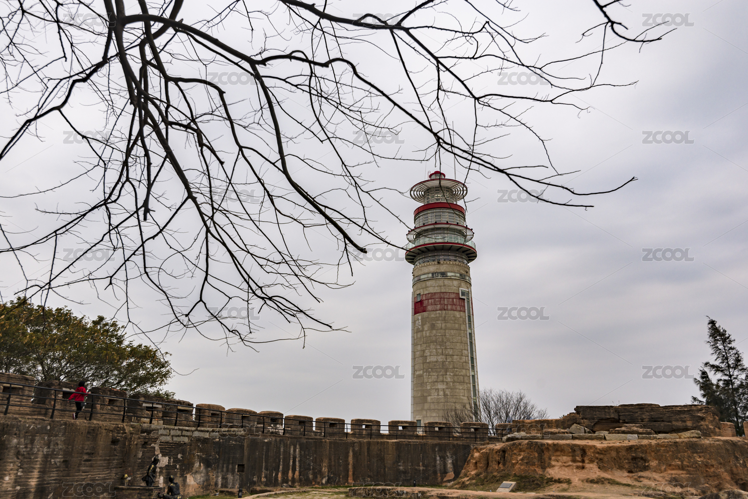 漳州南炮臺(tái)內(nèi)部布局及遠(yuǎn)處的燈塔,中國福建