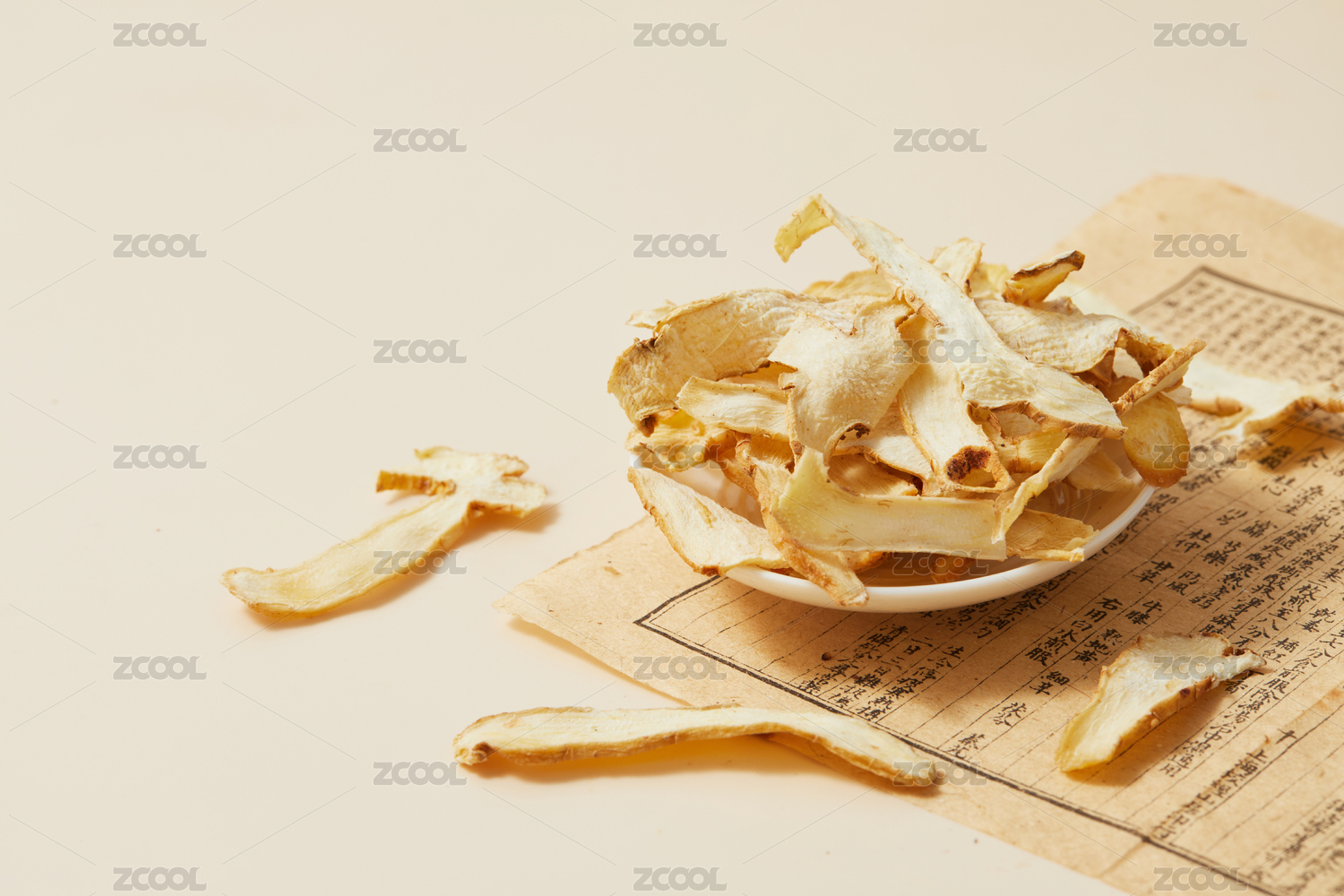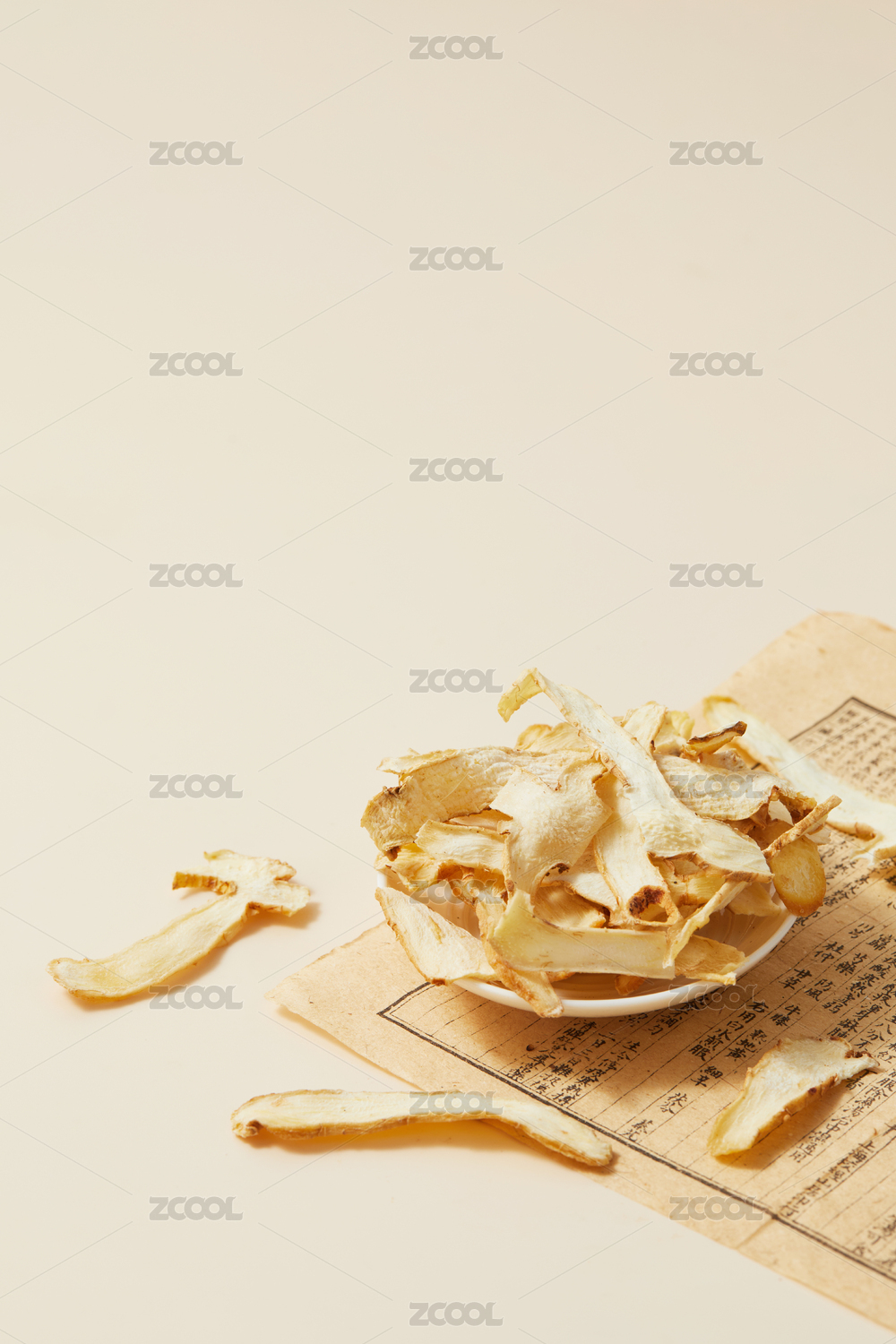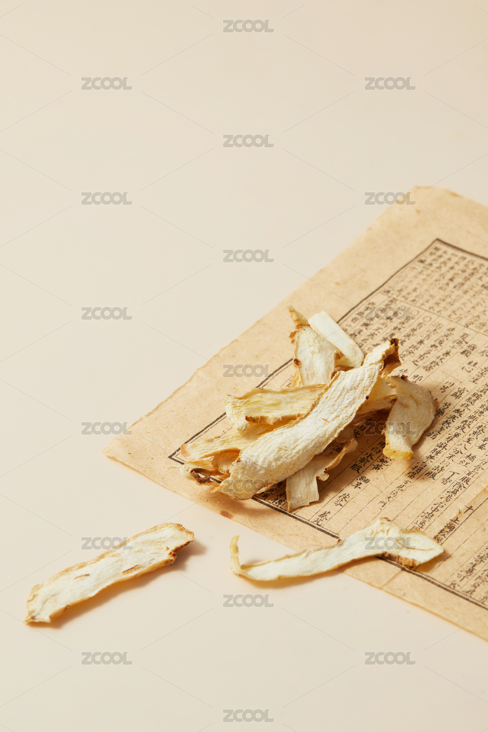黃色背景古書上的中藥材玉竹