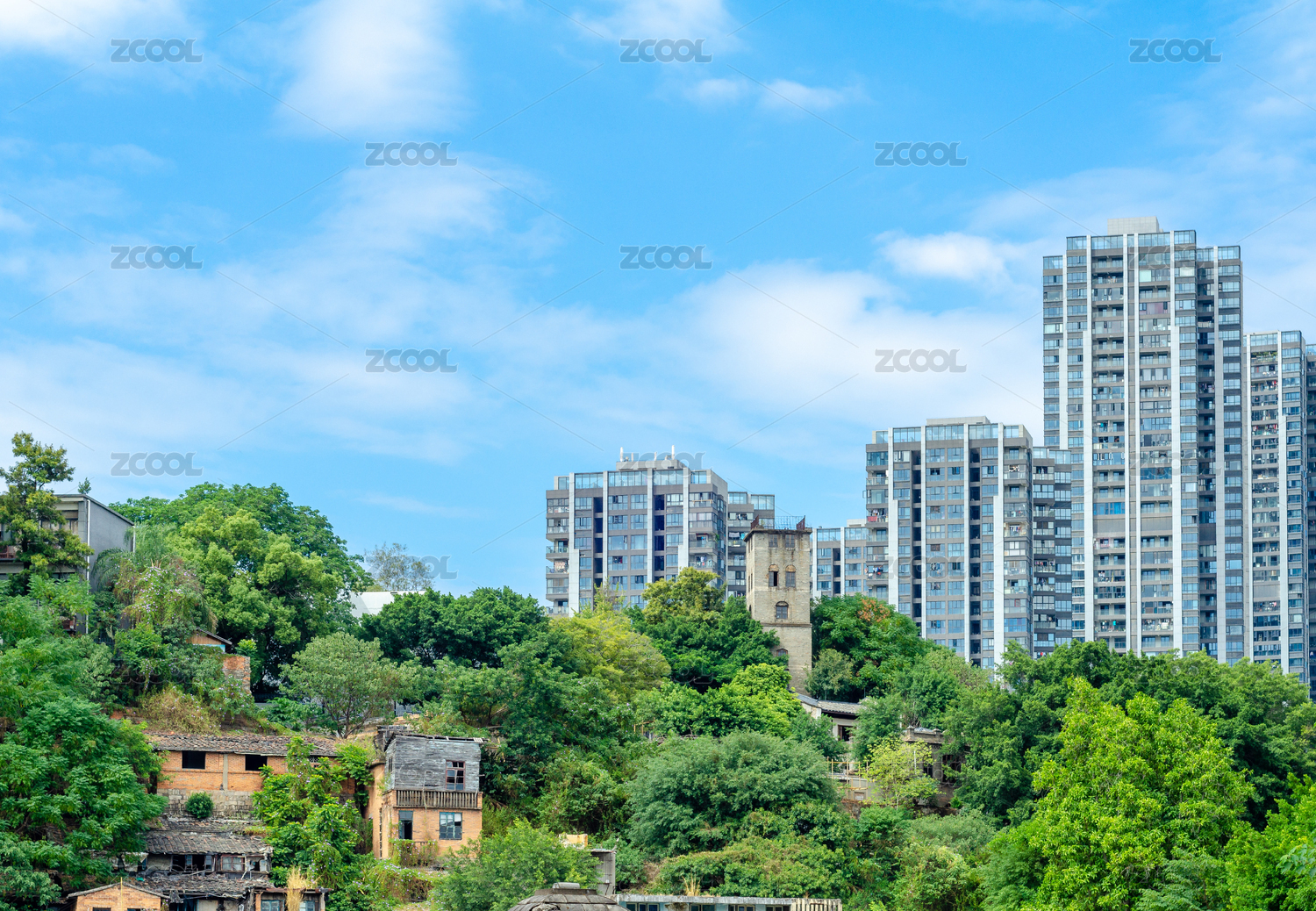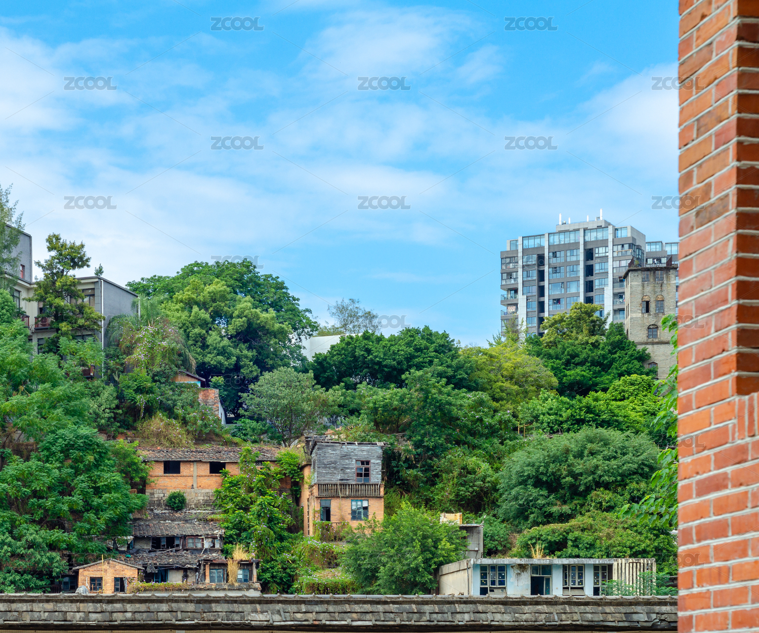 福州上下杭旁上坡上的老房子和新高層
