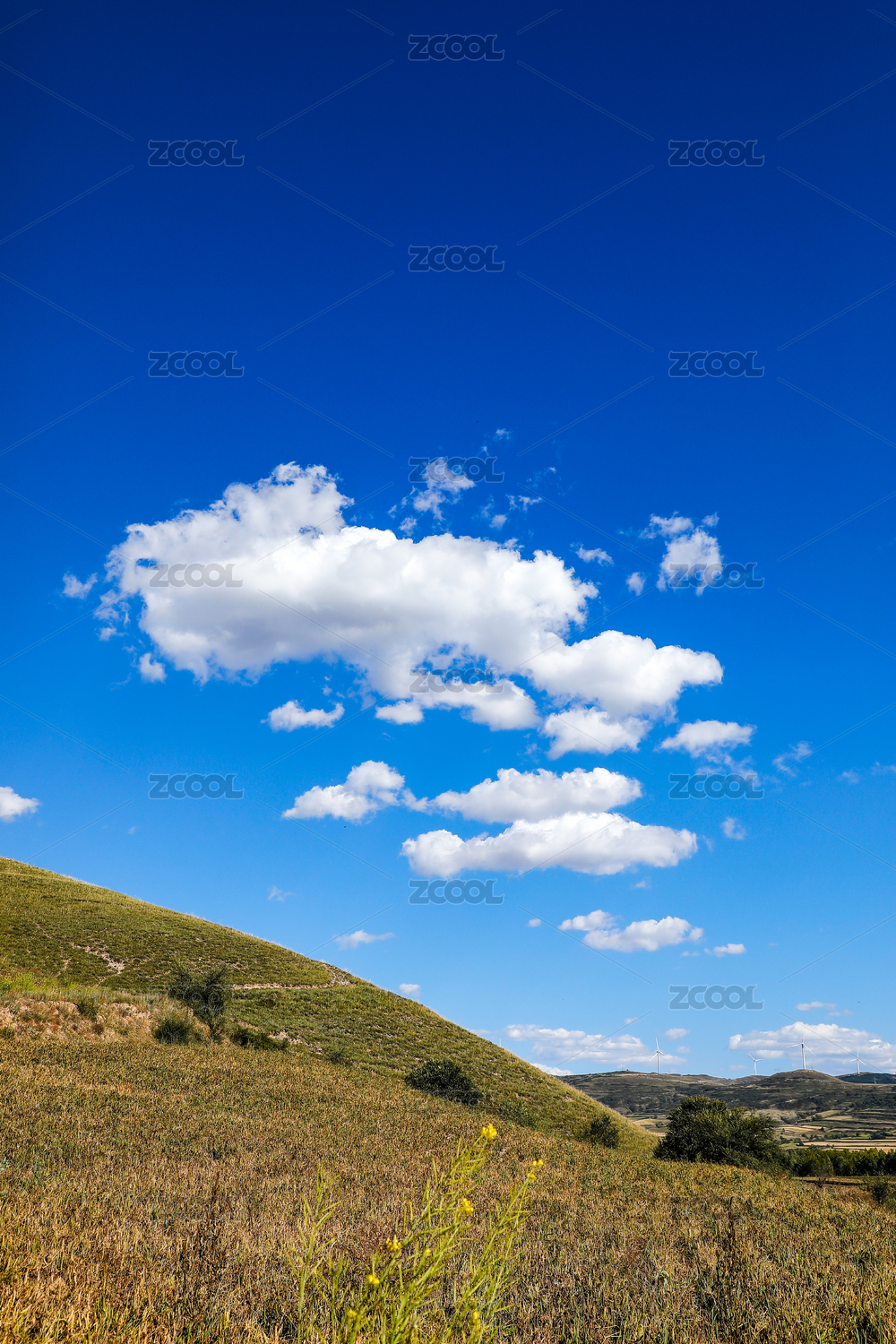 上坡上的藍天上上由近到遠的白云