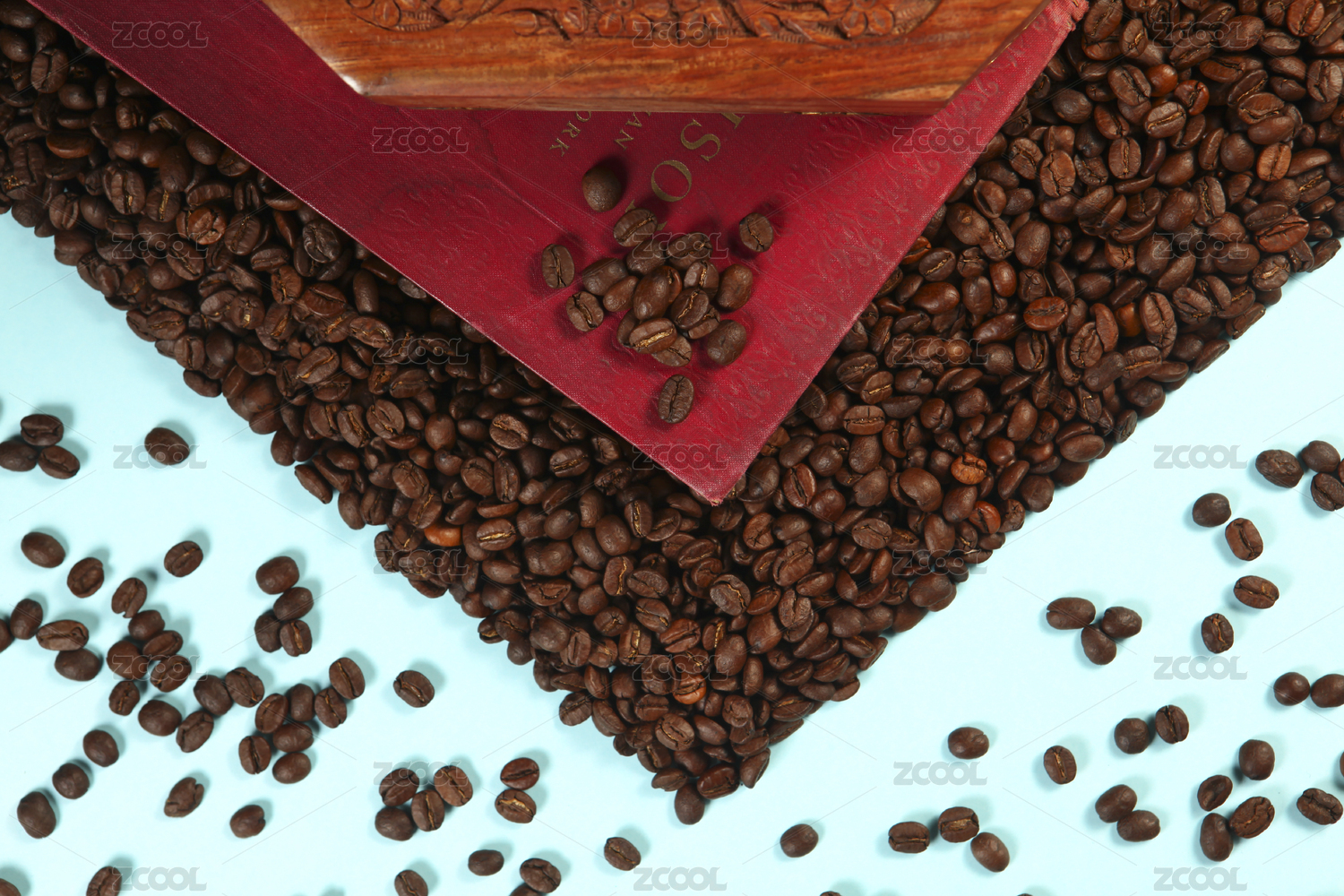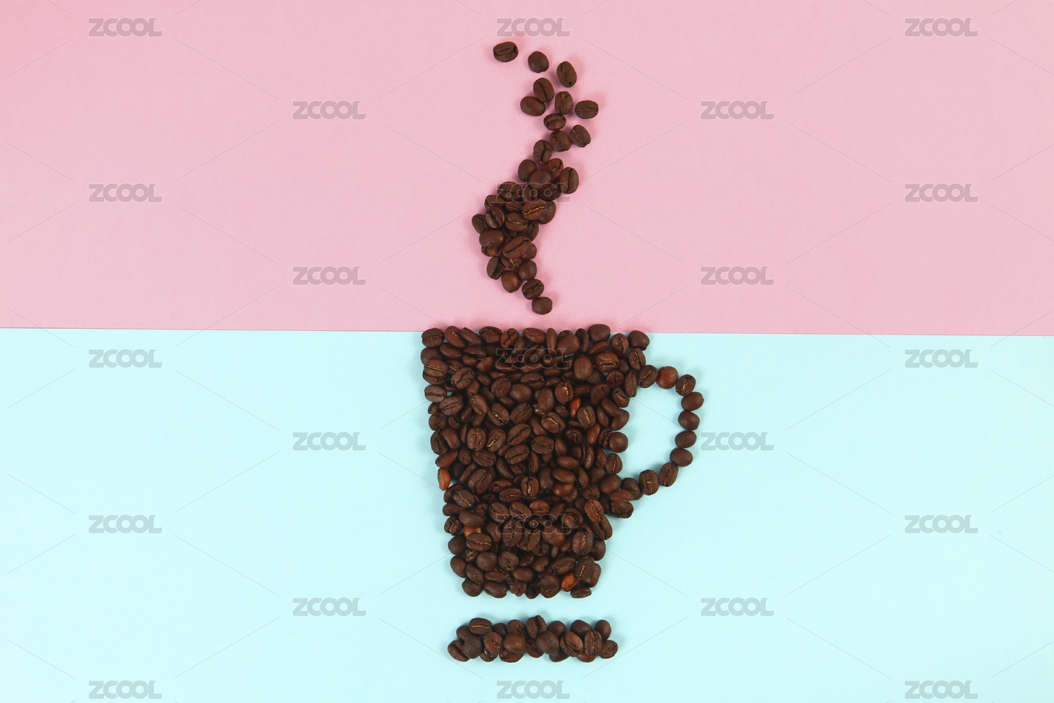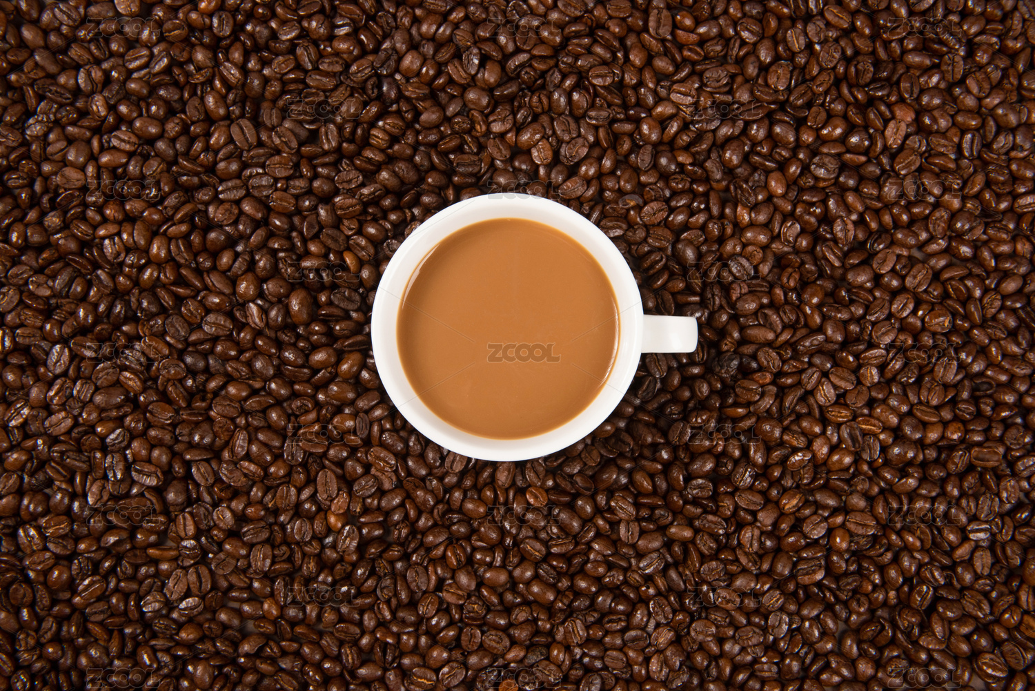 咖啡豆上的一杯咖啡,烘焙咖啡背景