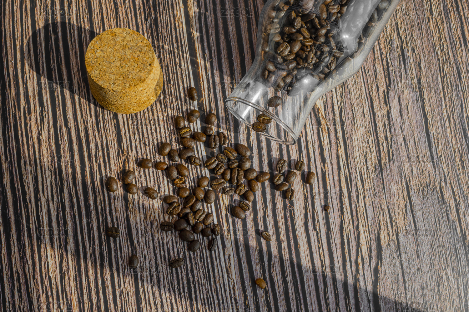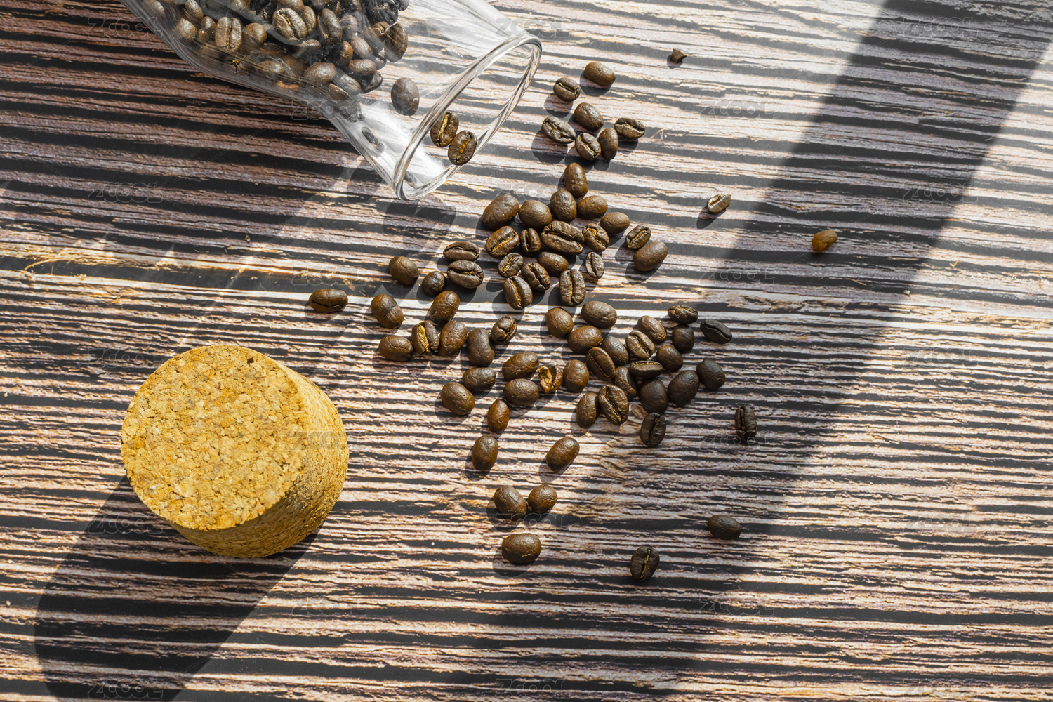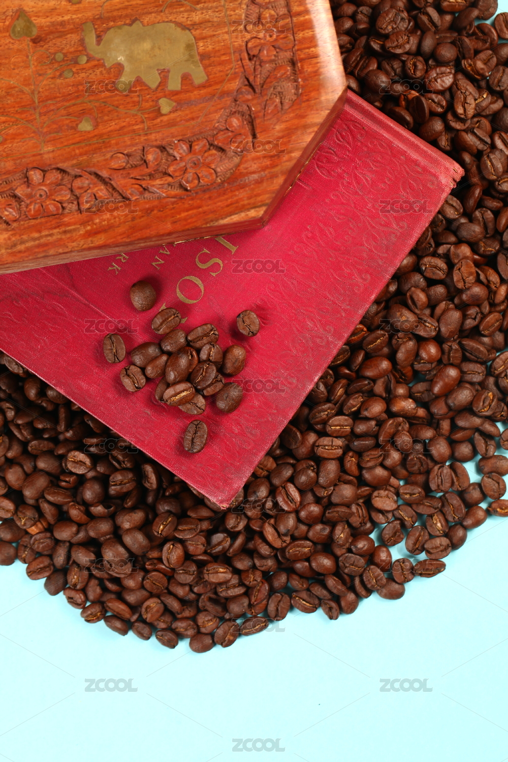 咖啡豆上的一杯咖啡,烘焙咖啡背景