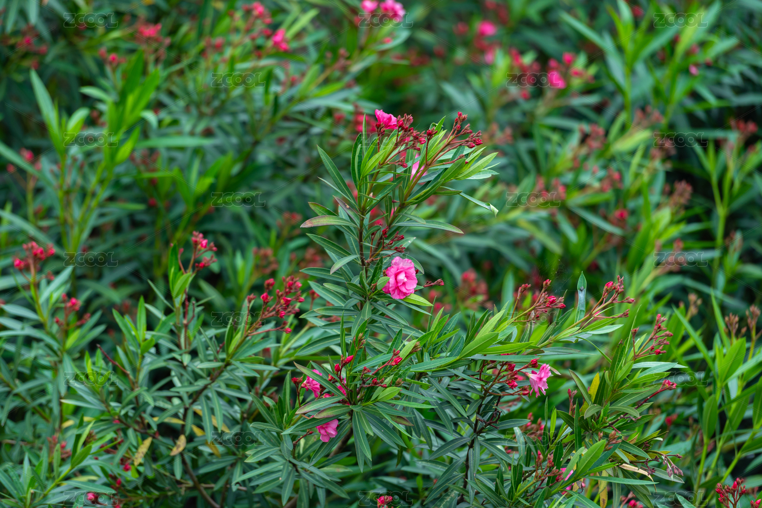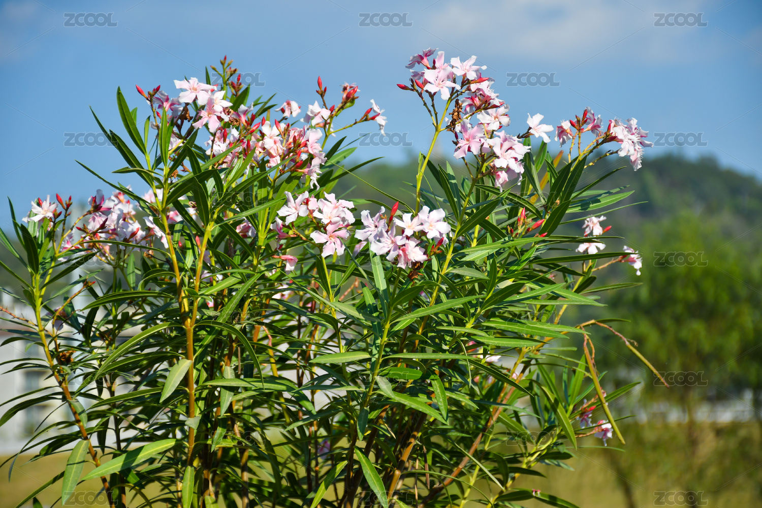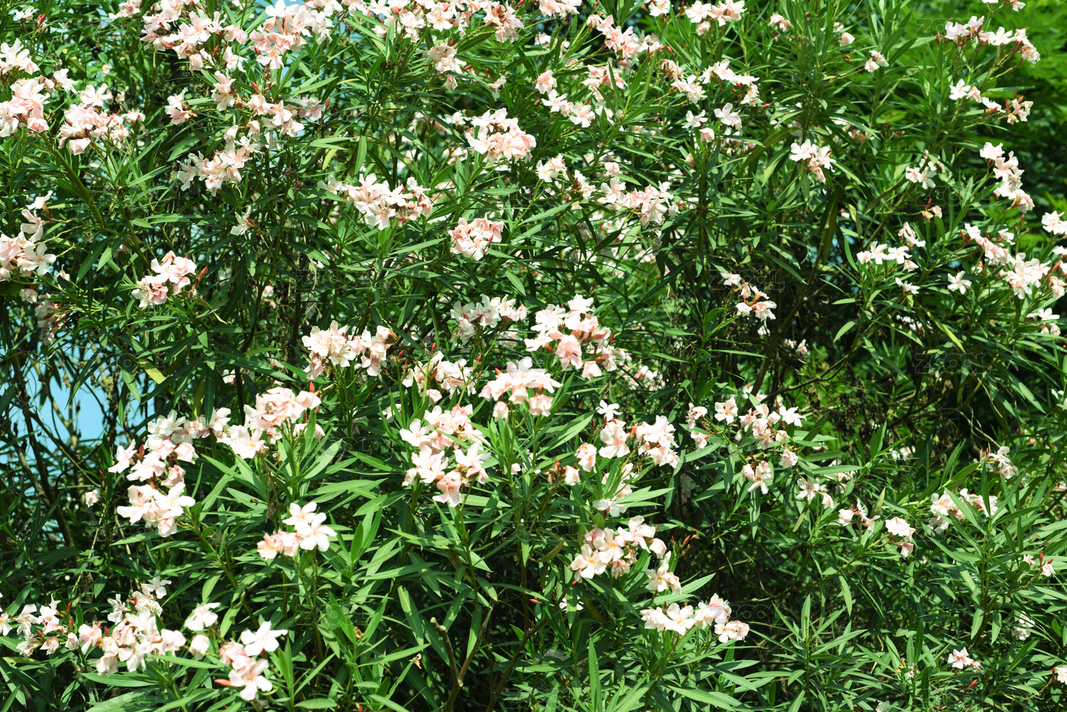 路邊樹叢中盛開的環(huán)保衛(wèi)士夾竹桃