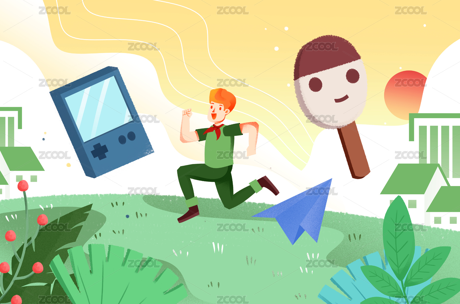 卡通夏天夏令營幼兒園兒童童年玩具矢量插畫