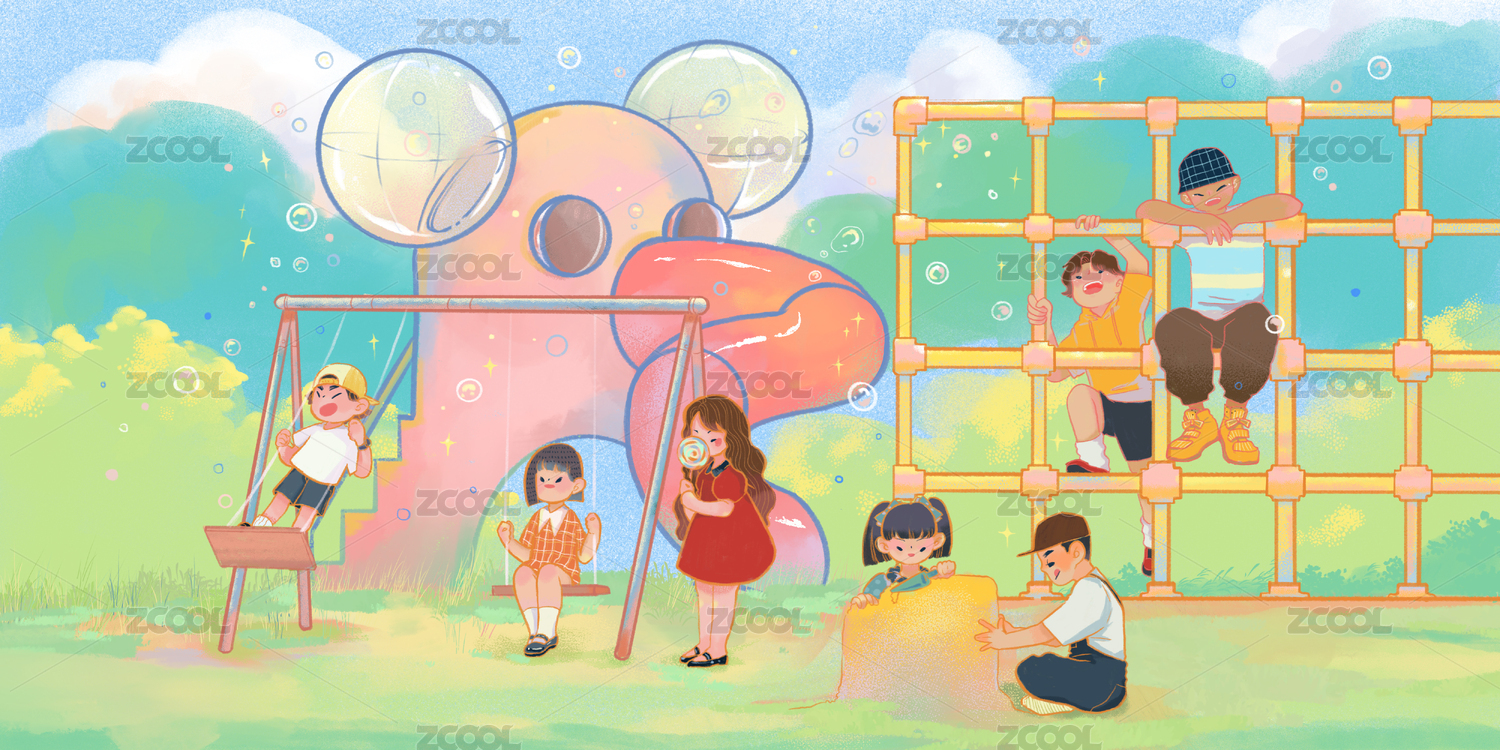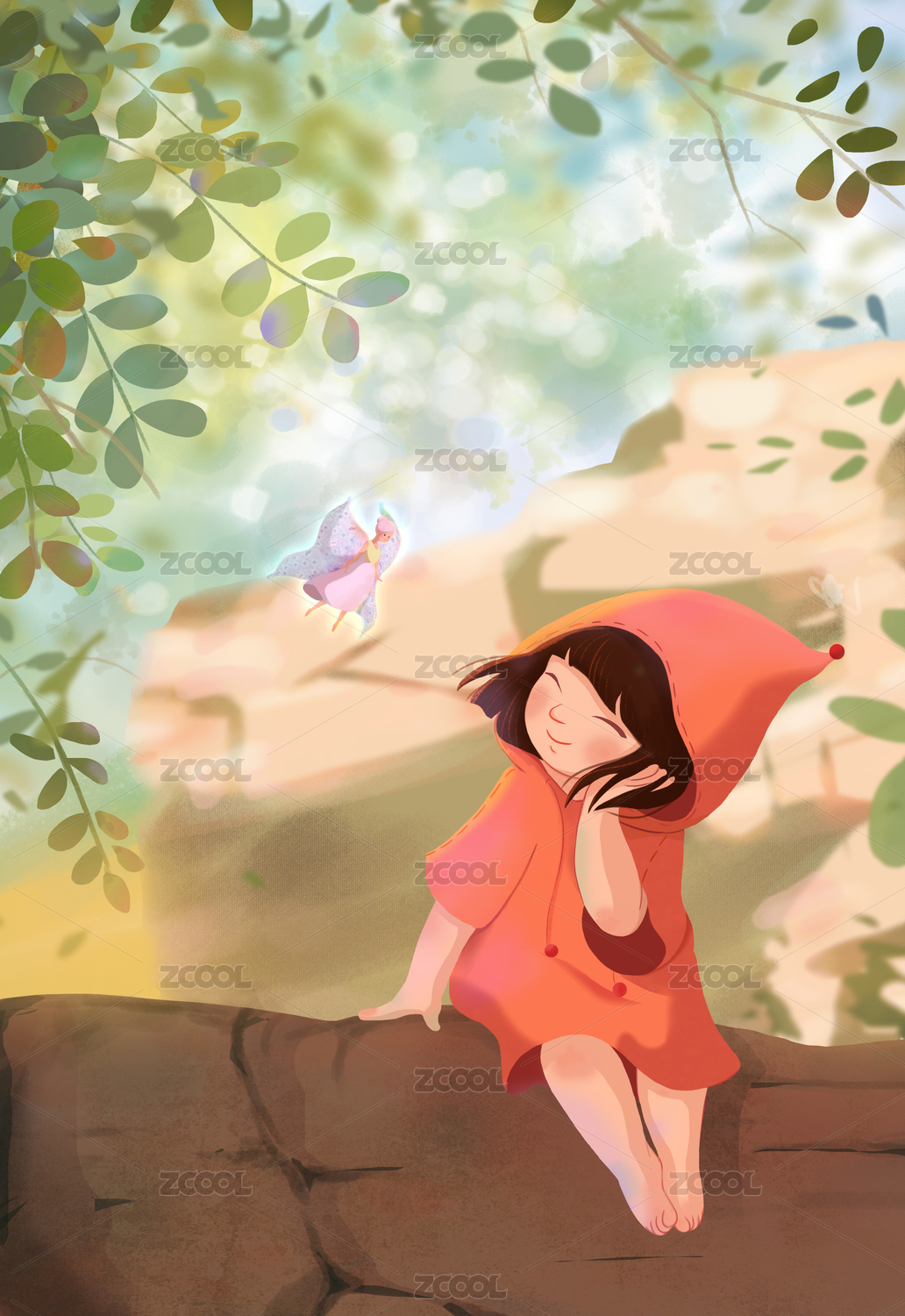 六一兒童節(jié)小孩躺草地插畫快樂童年活動海報