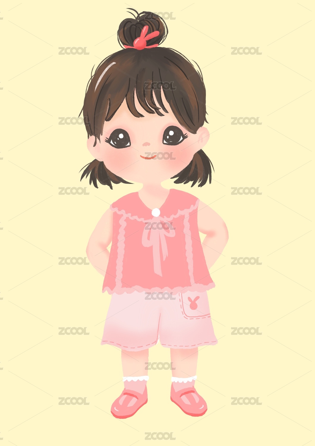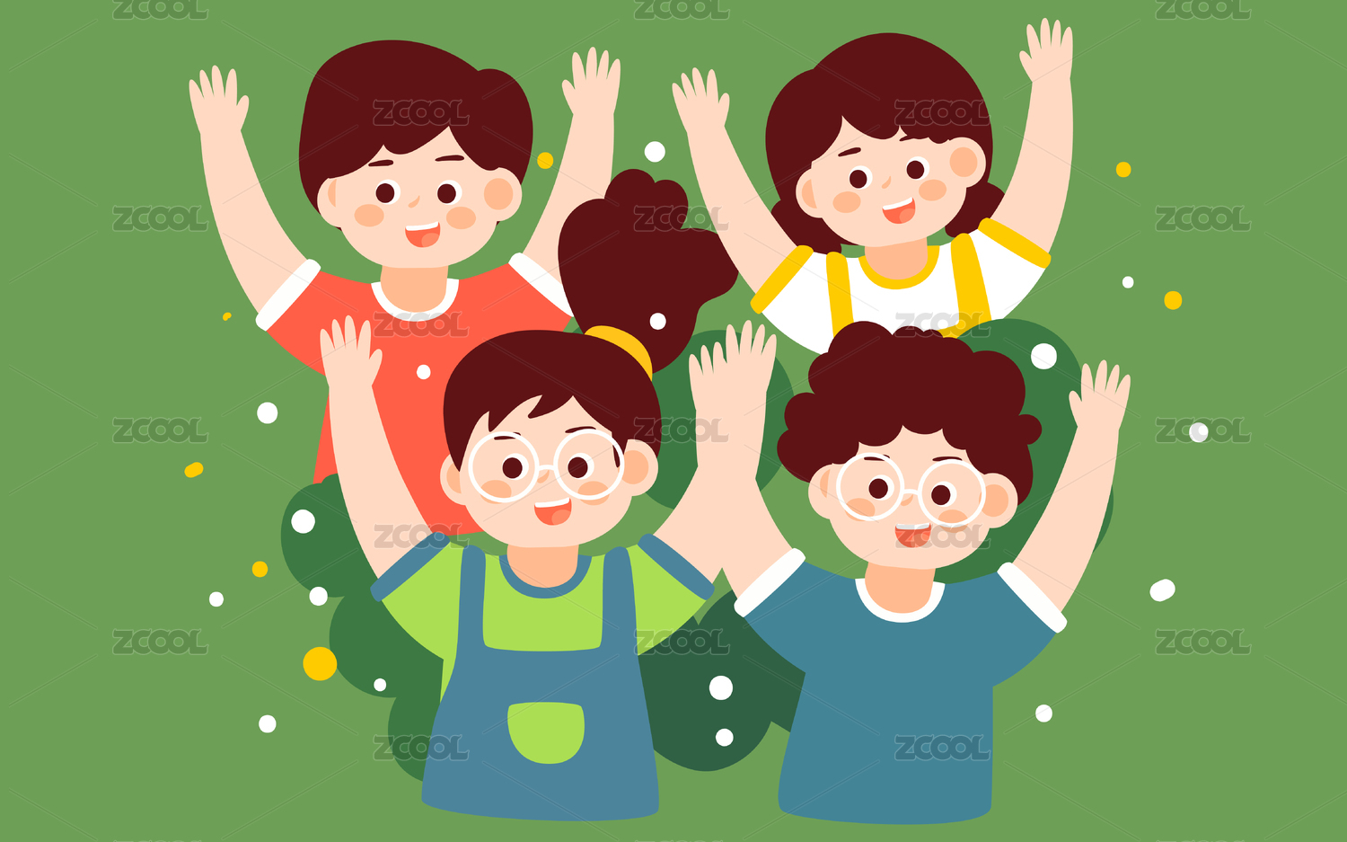 夏天兒童吃西瓜清新可愛歡樂童年插畫