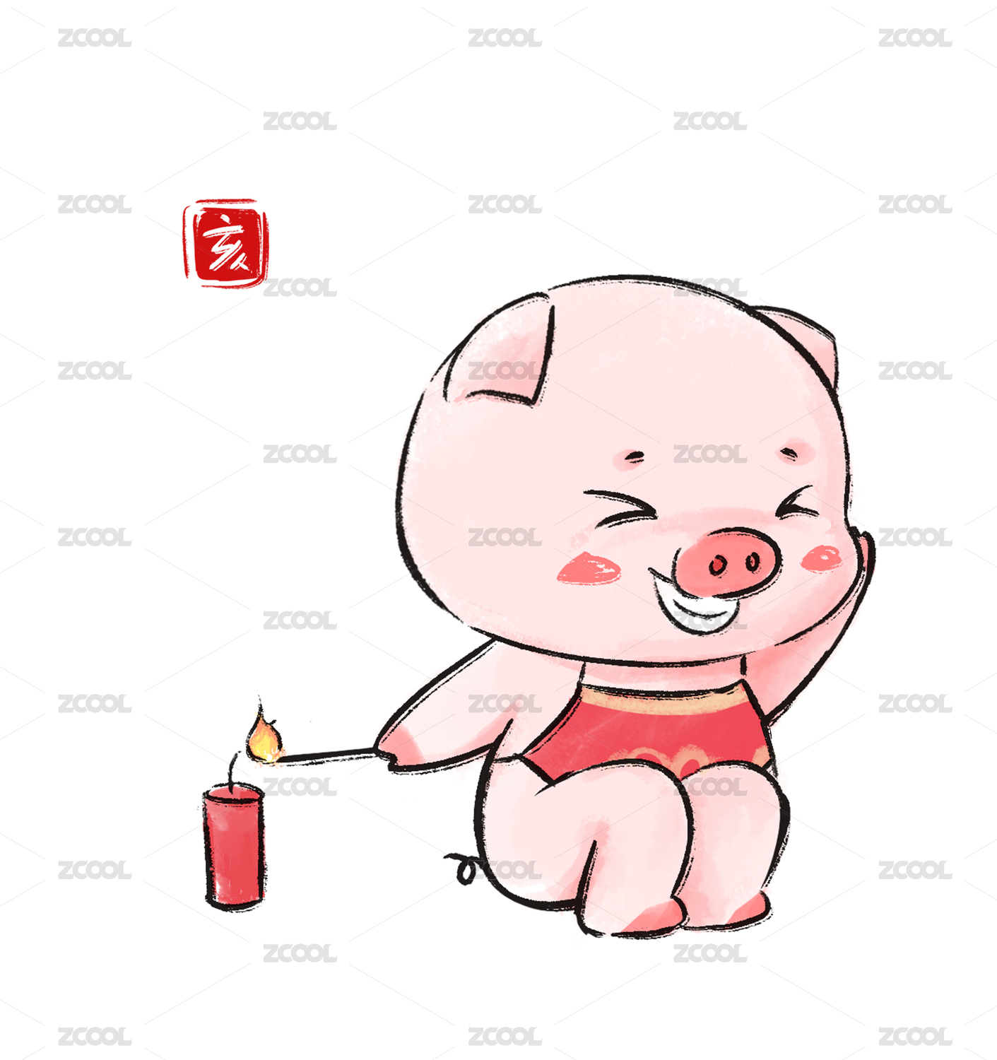豬年春節(jié)新年卡通抱錦鯉小豬
