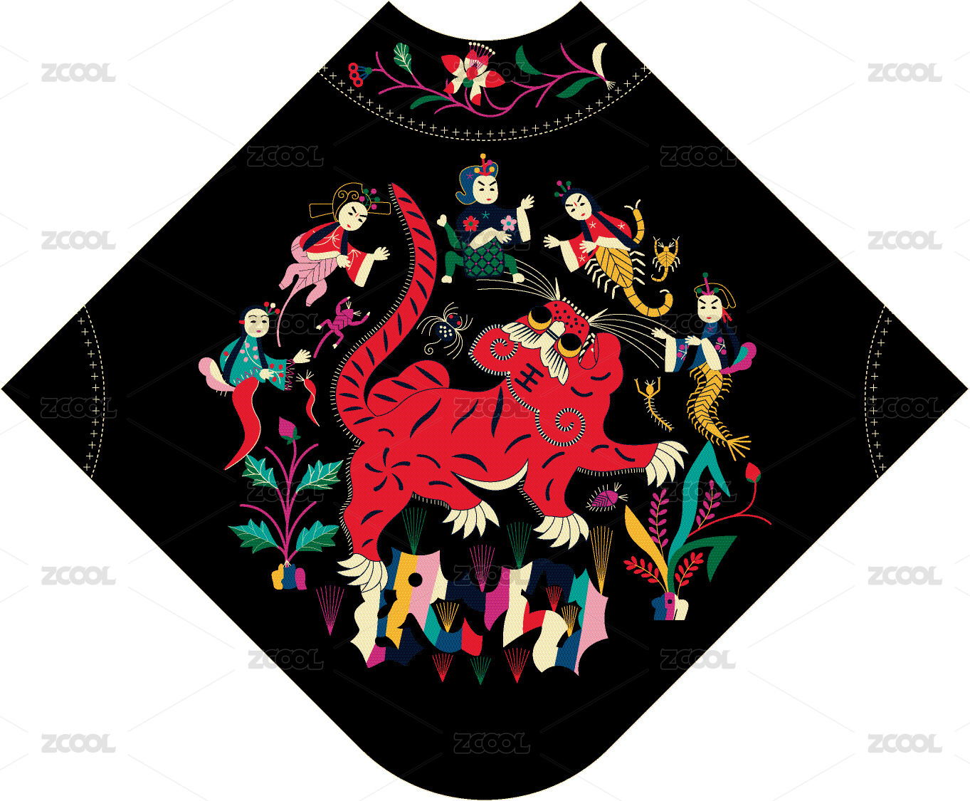 民國山西刺繡肚兜上的虎鎮(zhèn)五毒紋