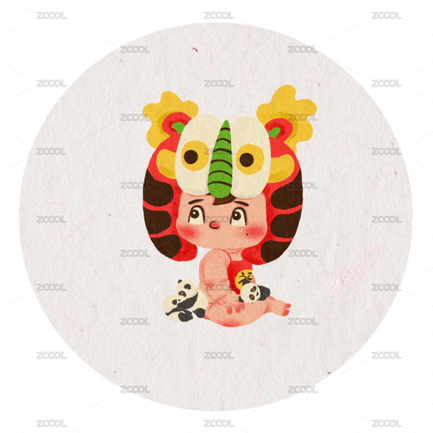吉祥福娃柿子豐收傳統(tǒng)喜慶嬰幼兒插畫