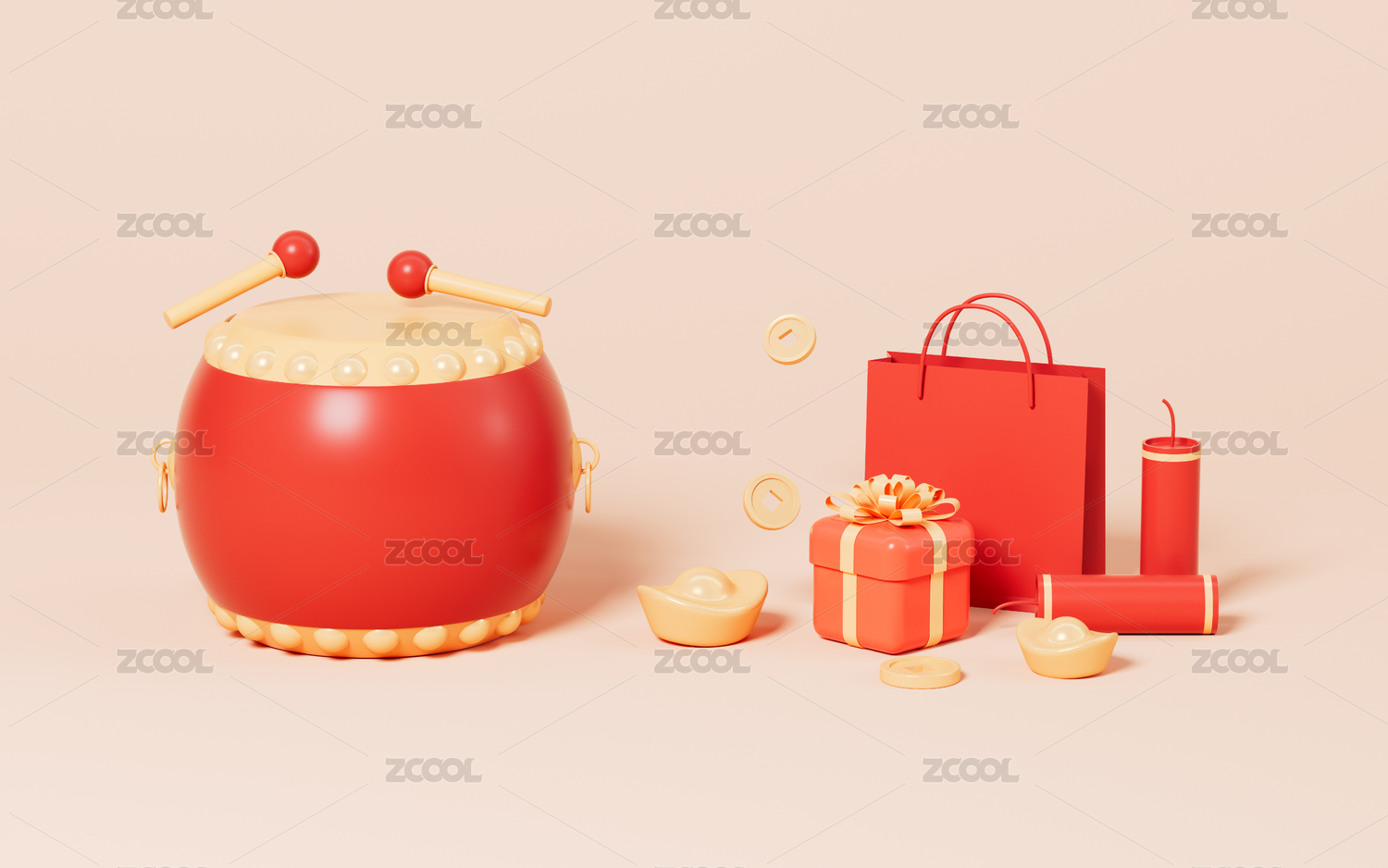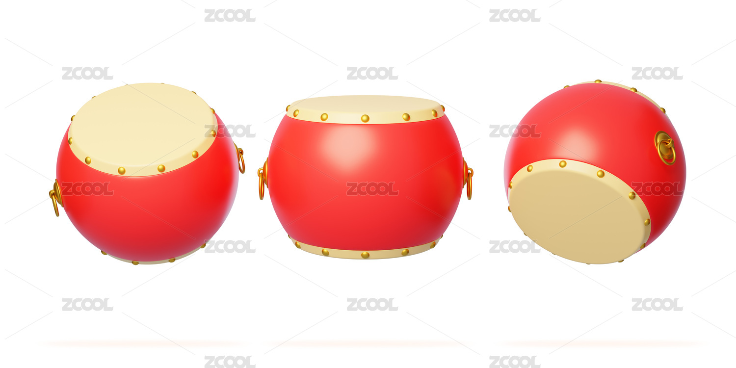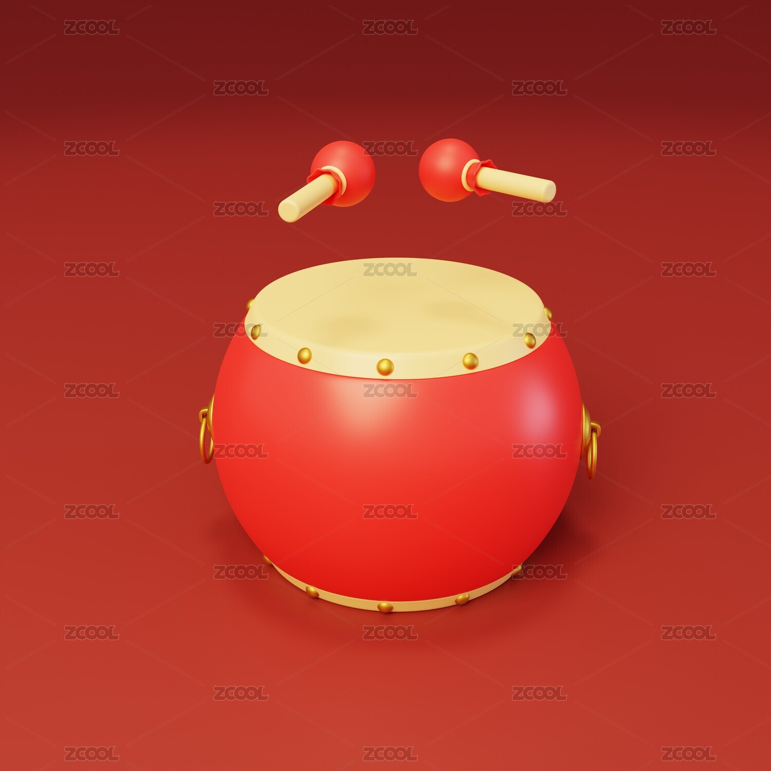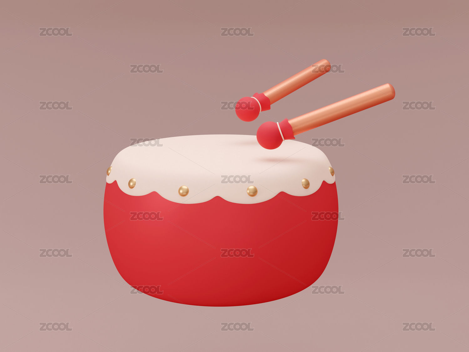 新年喜慶傳統(tǒng)打擊樂器鑼鼓3D