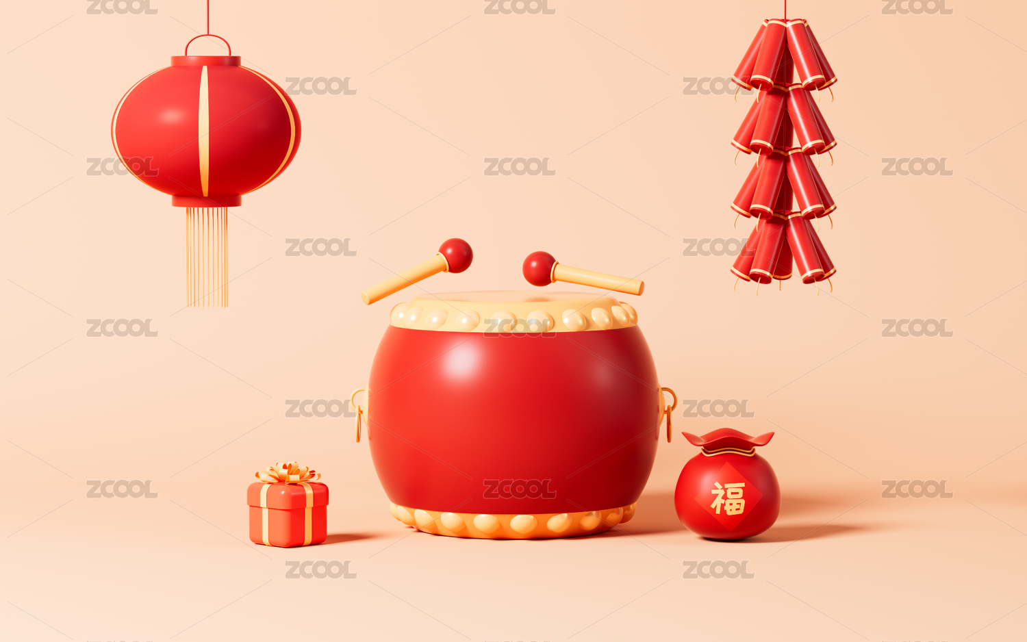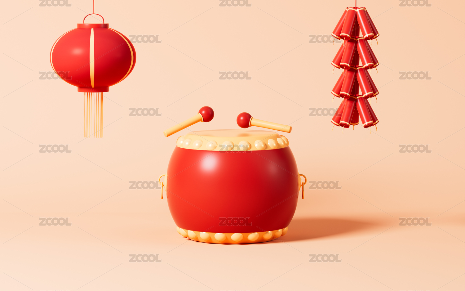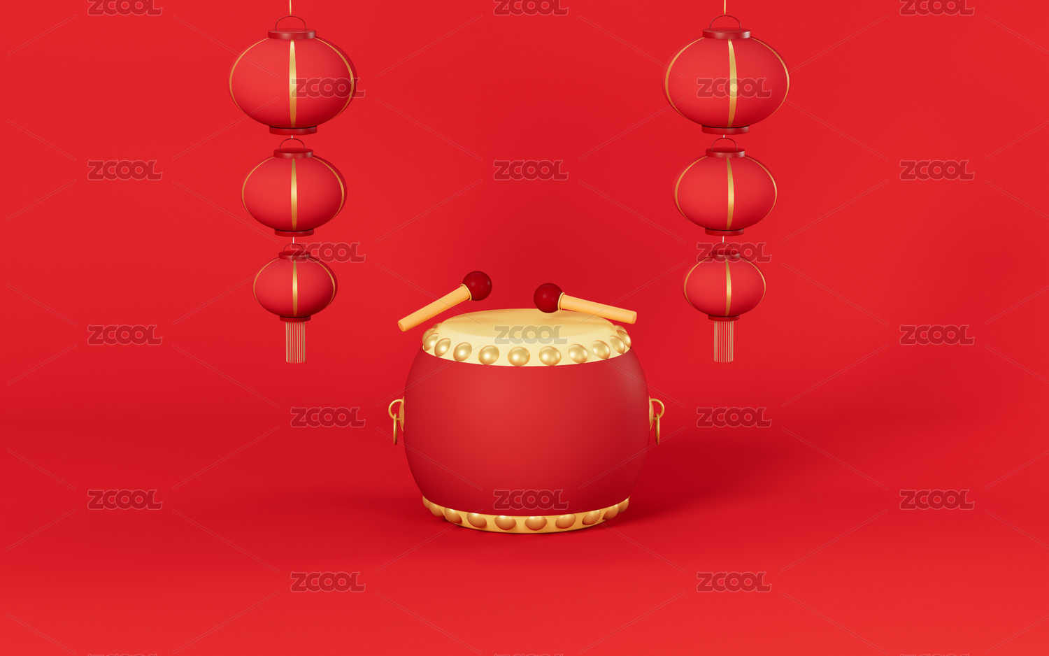 新年喜慶傳統(tǒng)打擊樂器鑼鼓3D