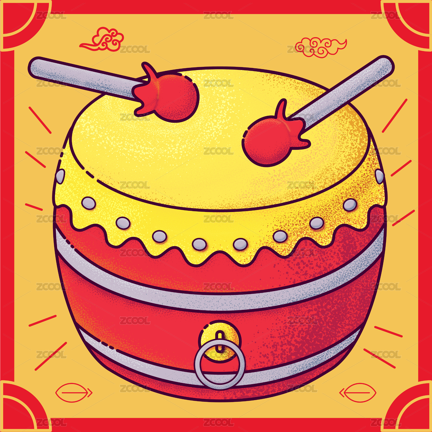 卡通手繪中國風(fēng)紅色鑼鼓插畫