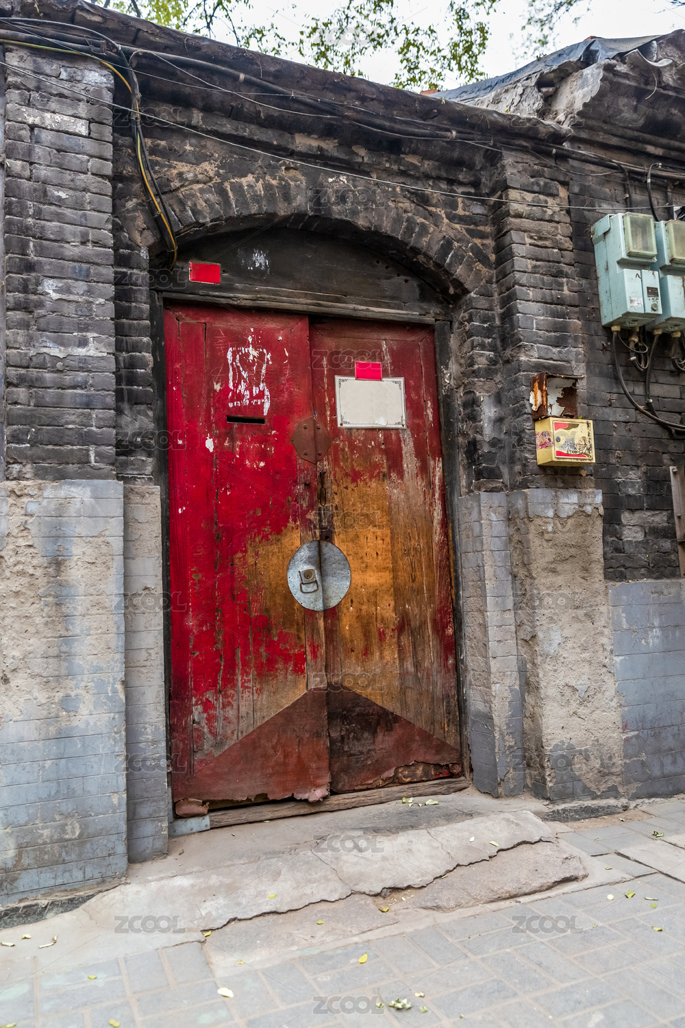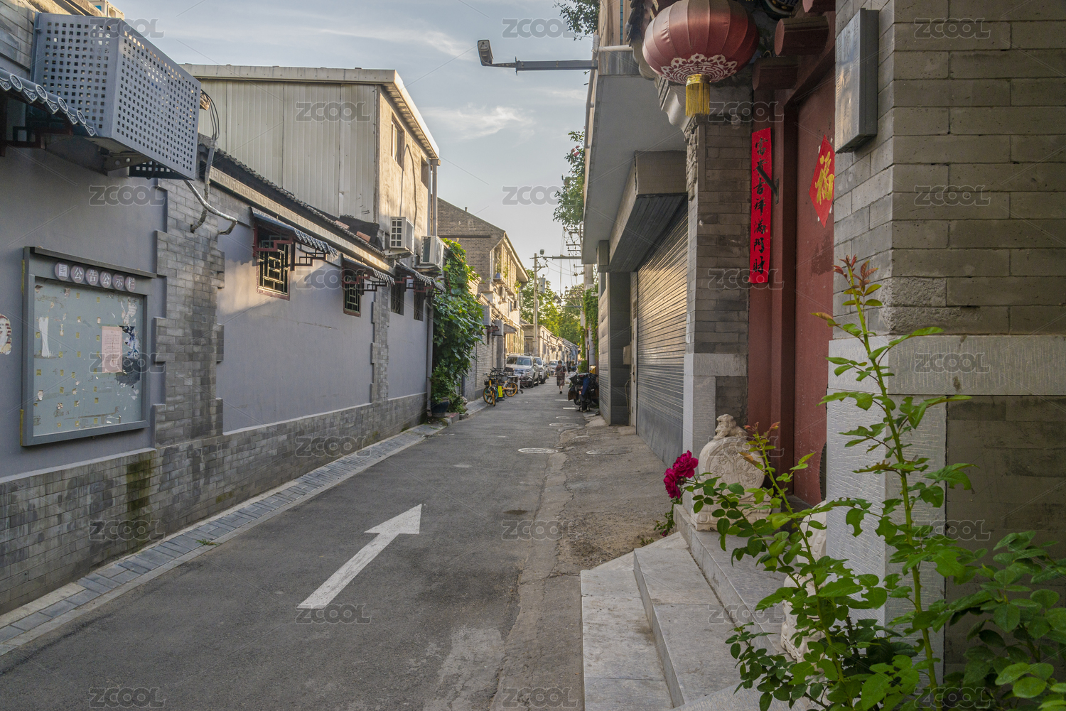 夏天的中國北京的北鑼鼓巷胡同的建筑民居房