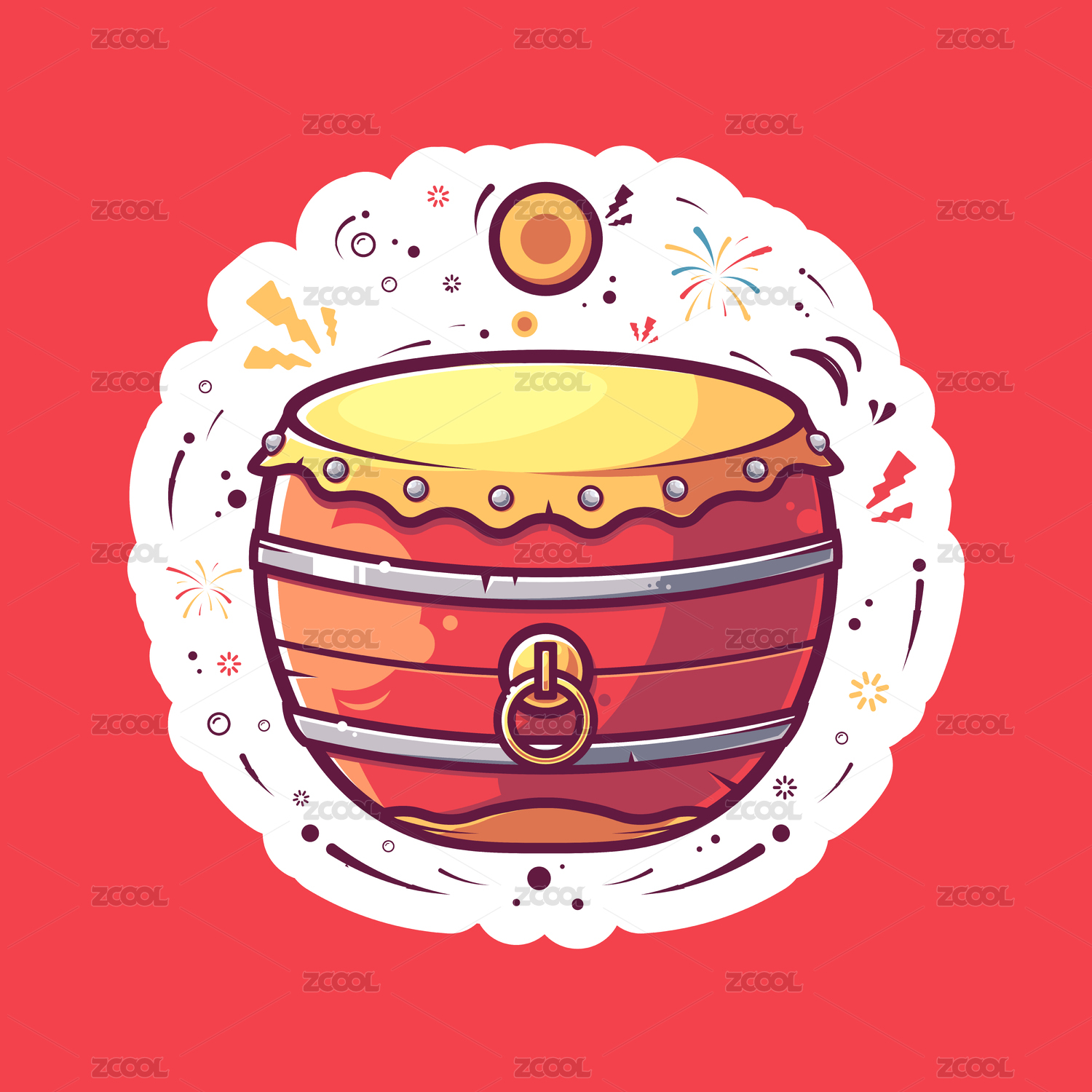 春節(jié)系列趣味插畫-鑼鼓圖標(biāo)