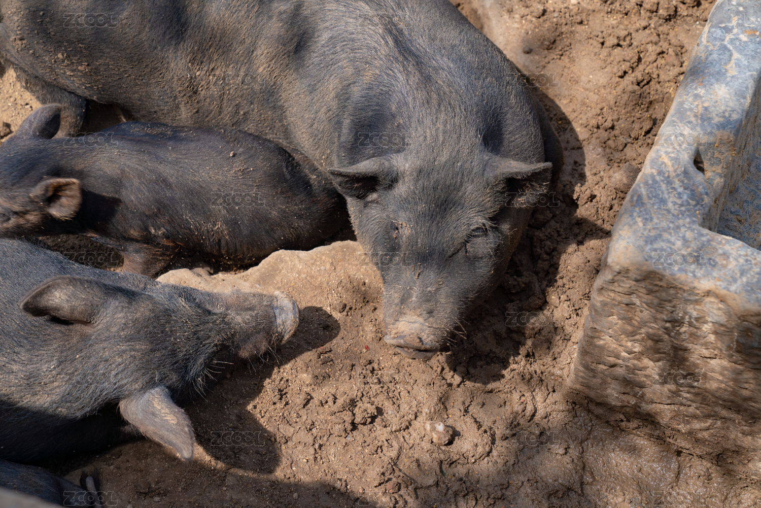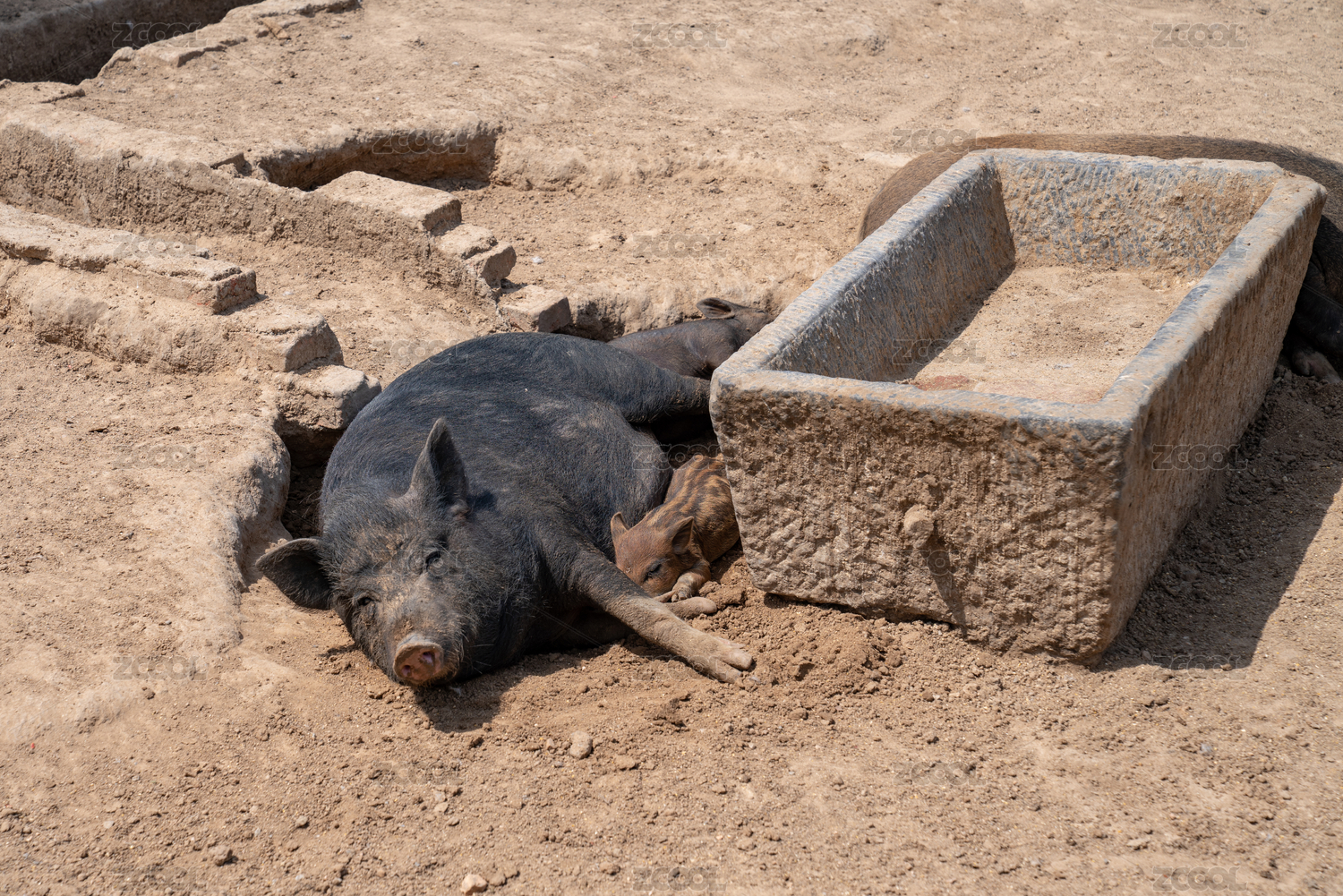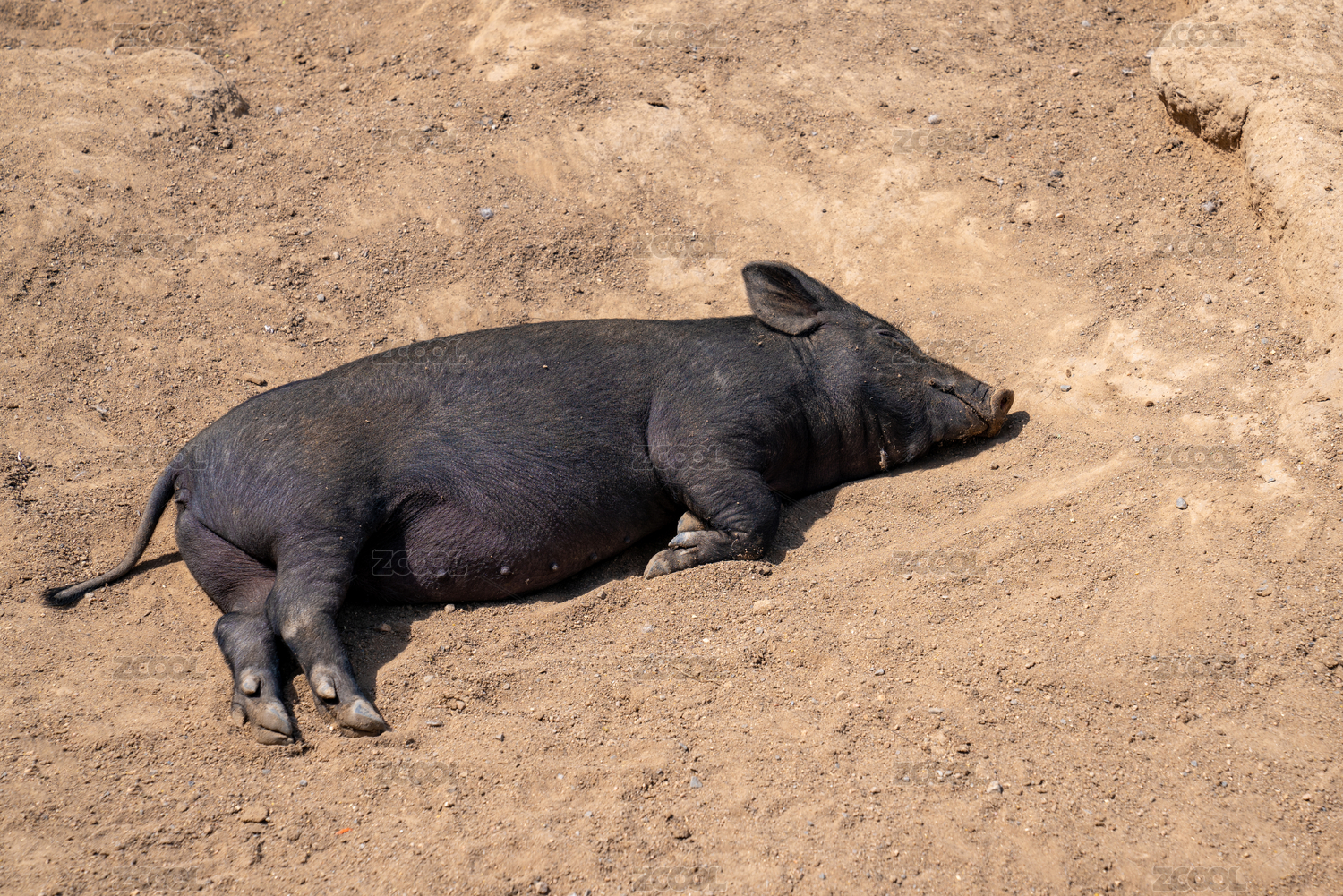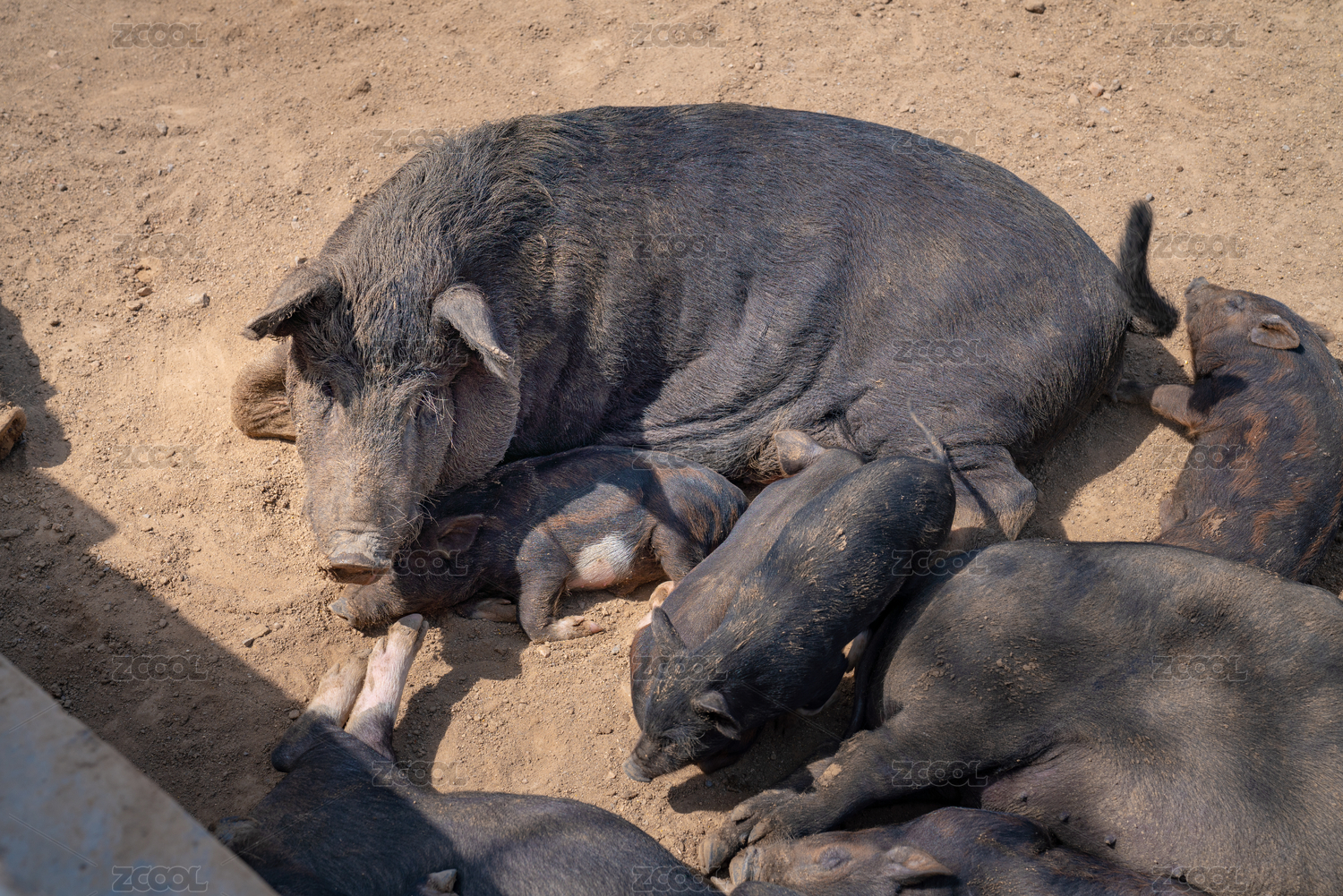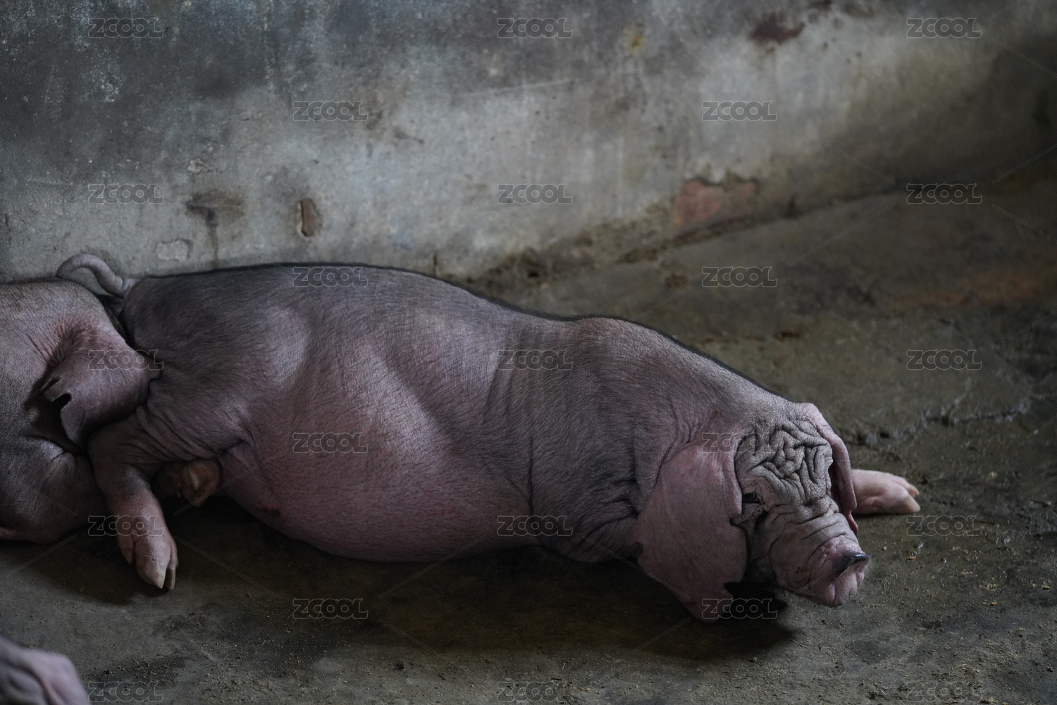 躺在地上睡覺的豬