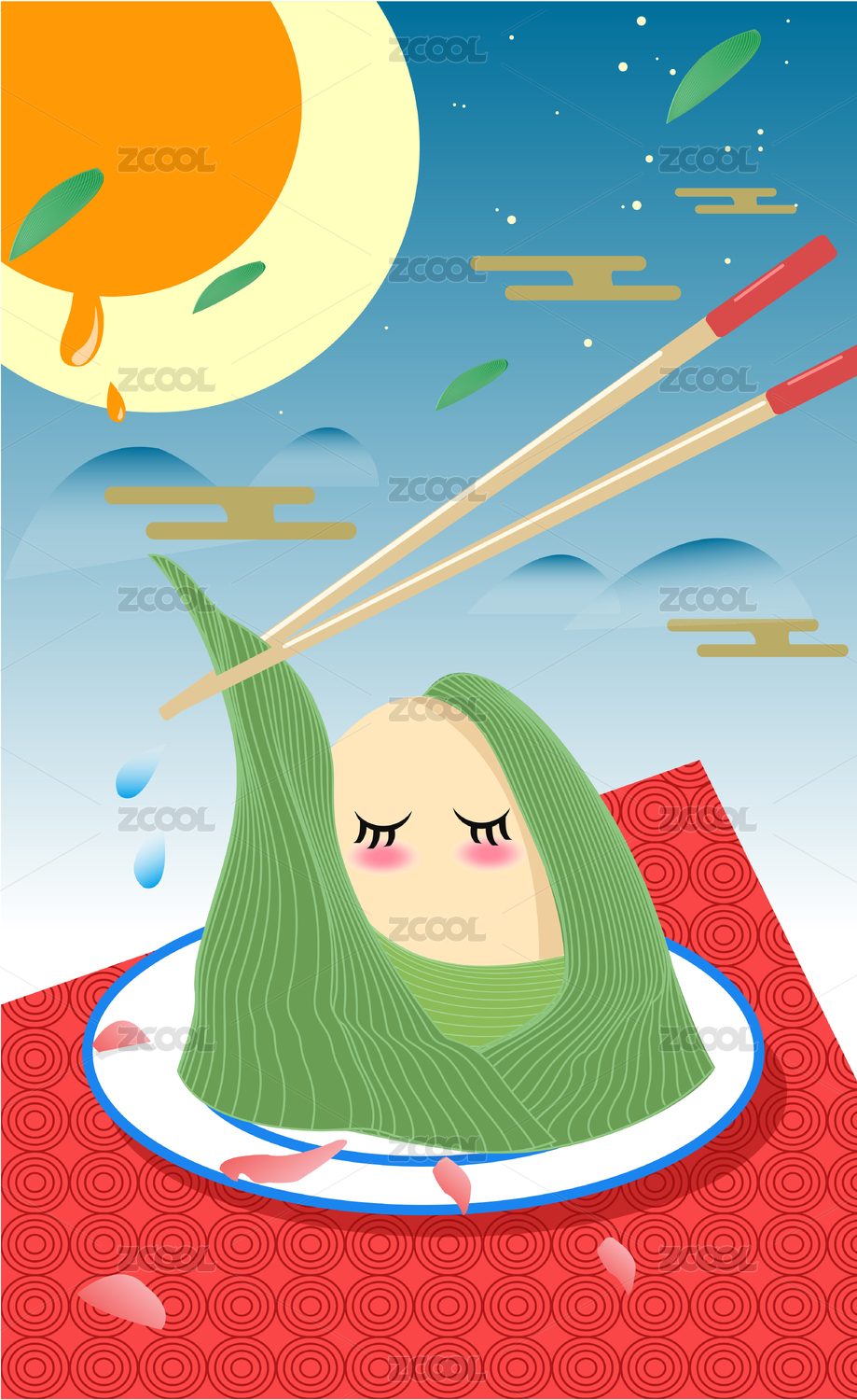 國(guó)潮紅棗粽葉端午矢量插畫素材