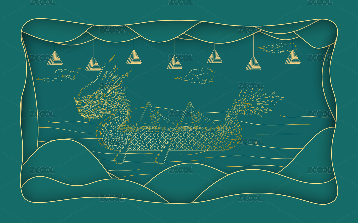 端午節(jié)劃龍舟的粽子國(guó)潮風(fēng)節(jié)日插畫