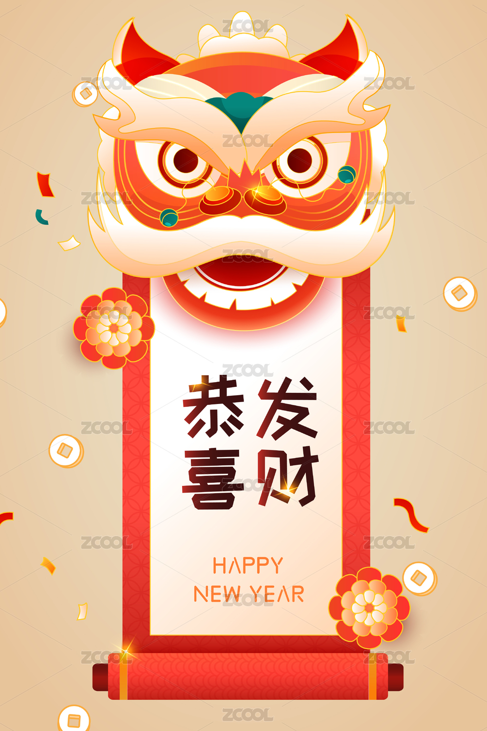 卡通2020年元旦除夕新年春節(jié)舞獅中國風(fēng)背景矢量插畫