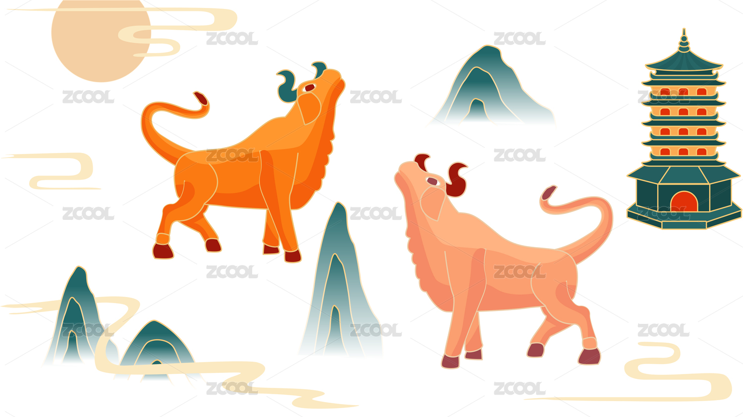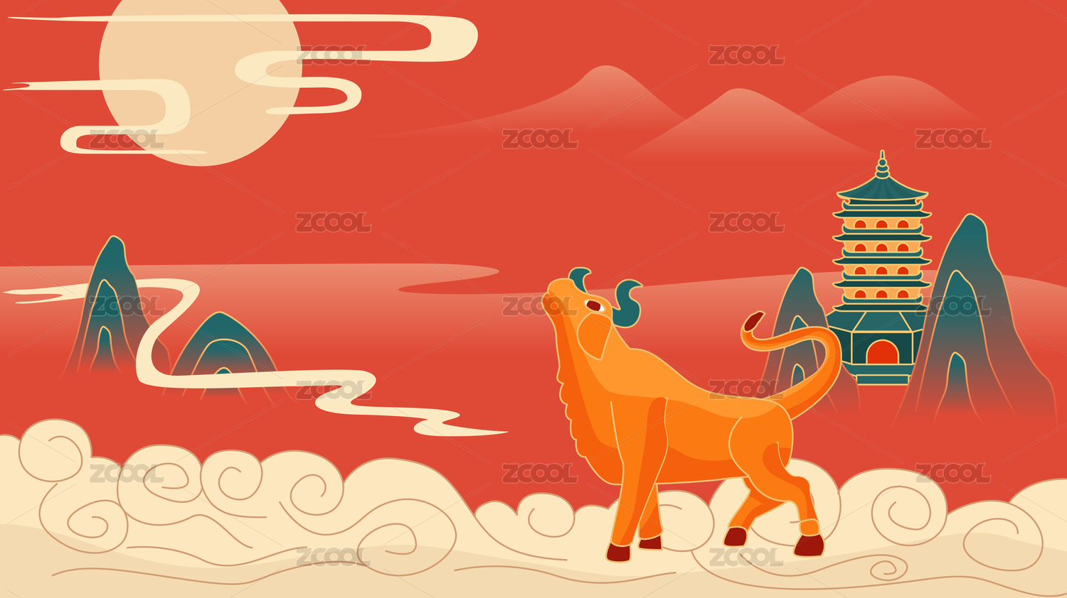 中國風(fēng)背景插畫矢量牛年國潮