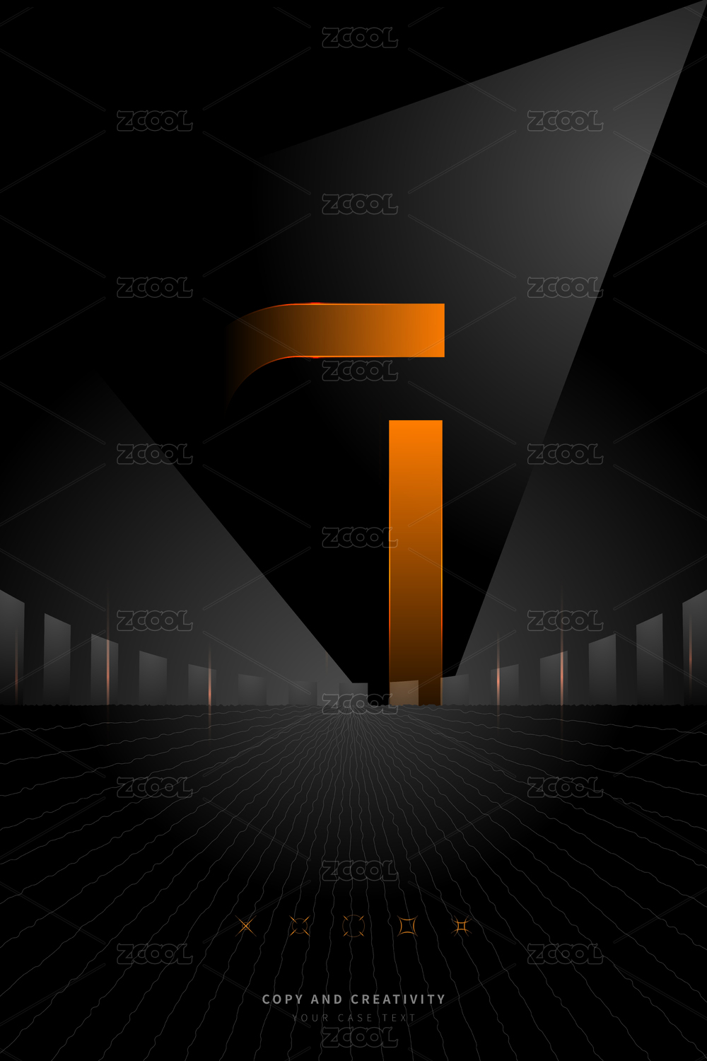黑色背景抽象大氣風格橙色數(shù)字7創(chuàng)意海報