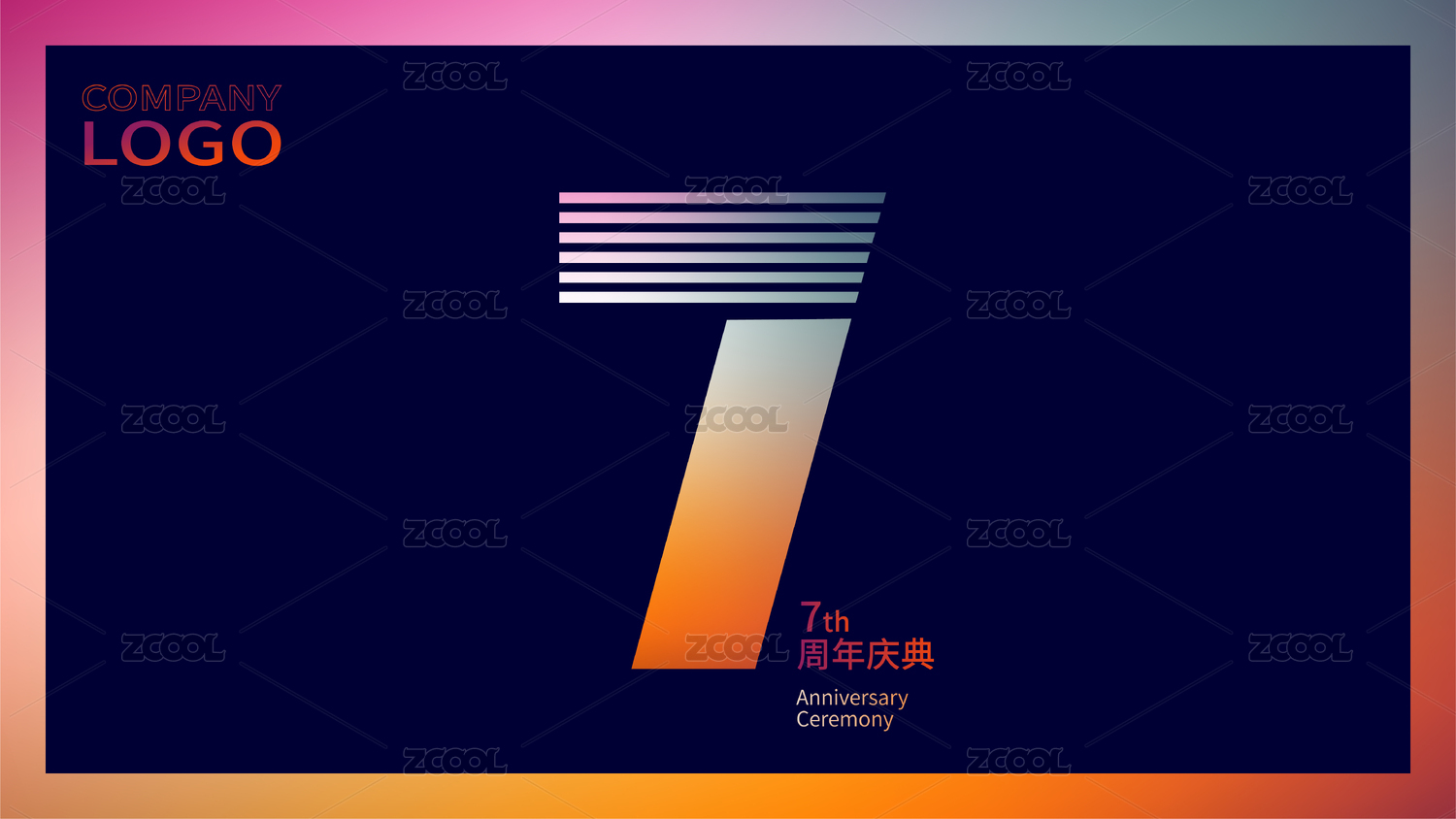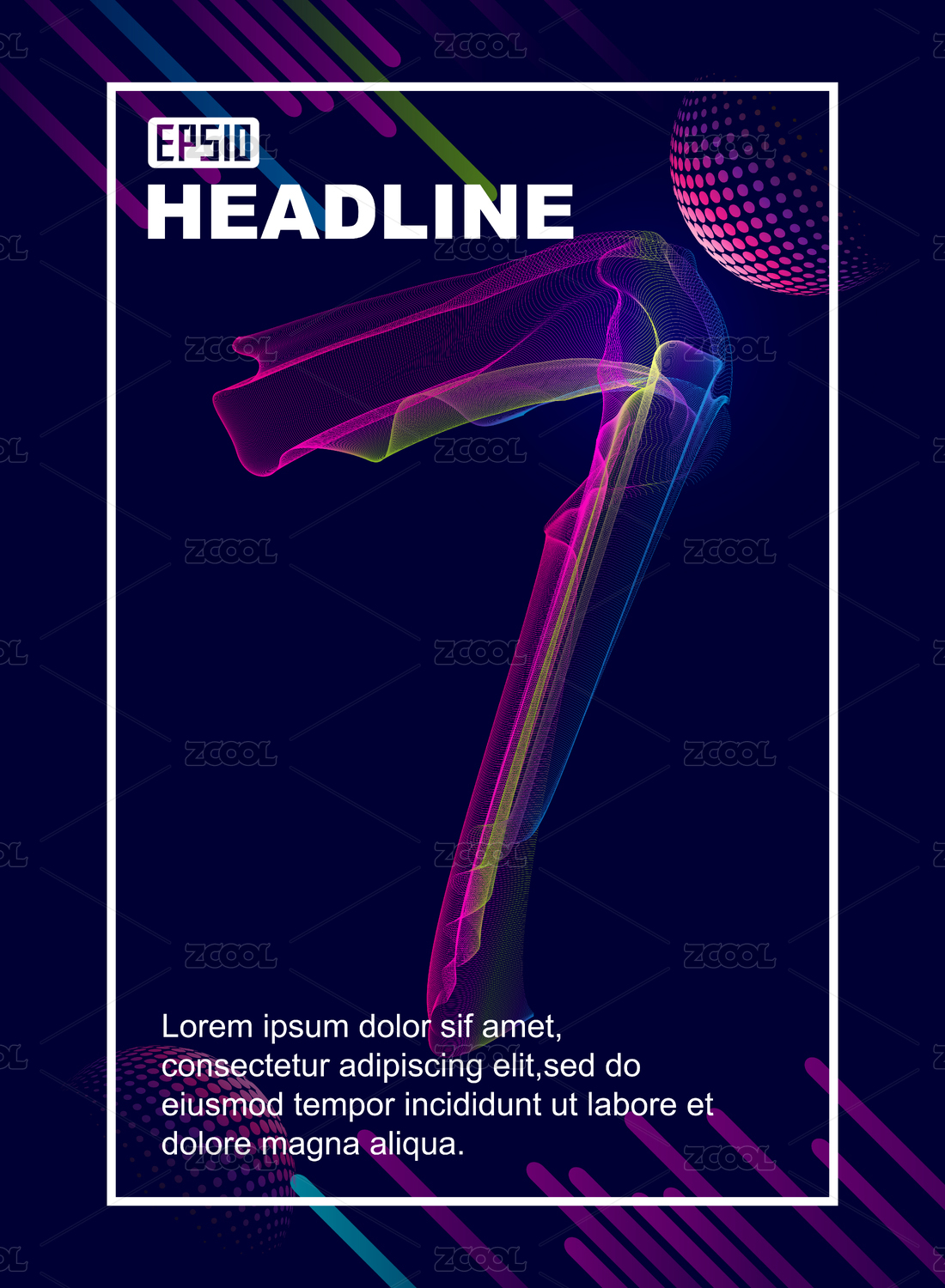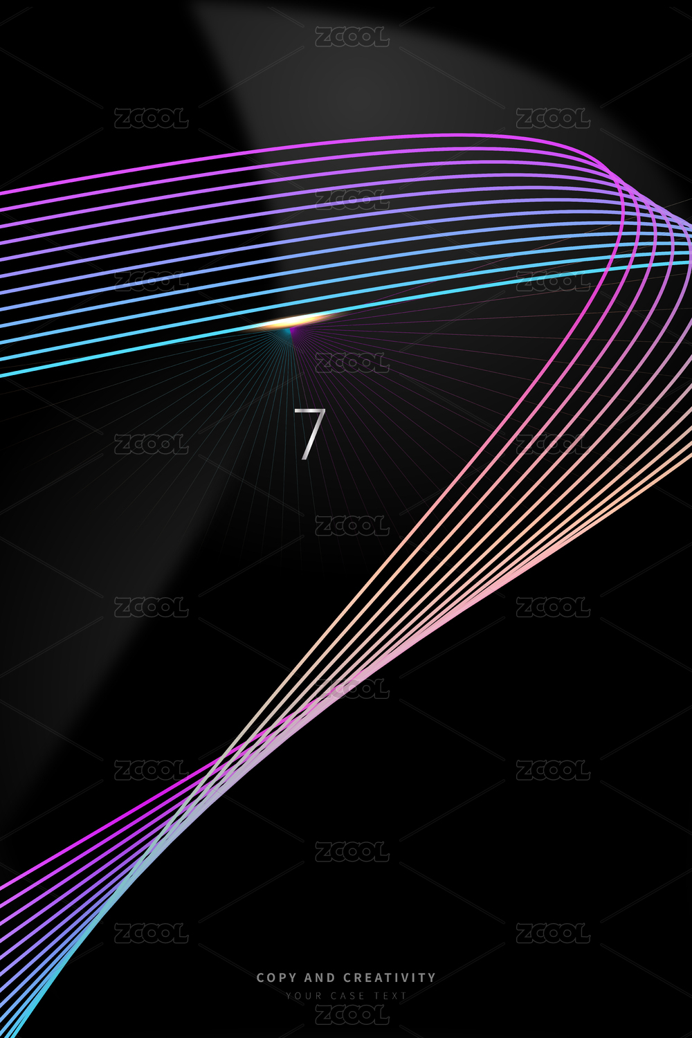 五彩斑斕黑色背景抽象線條數(shù)字7創(chuàng)意海報